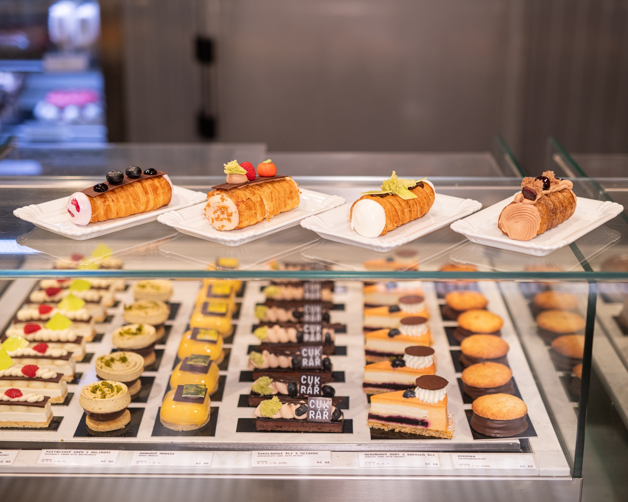 Очень рекомендуем попробовать эклеры (особенно ванильный и фисташковый). Они здесь такие, какими и должны – воздушные, нежные и невероятно вкусные. В ближайшие два дня в наличии будут эклеры из горького, молочного и белого шоколада, фисташковые, матча, пралине, вишневые и ванильные. Отдельного внимания также заслуживает чешский десерт Větřník на французский манер.