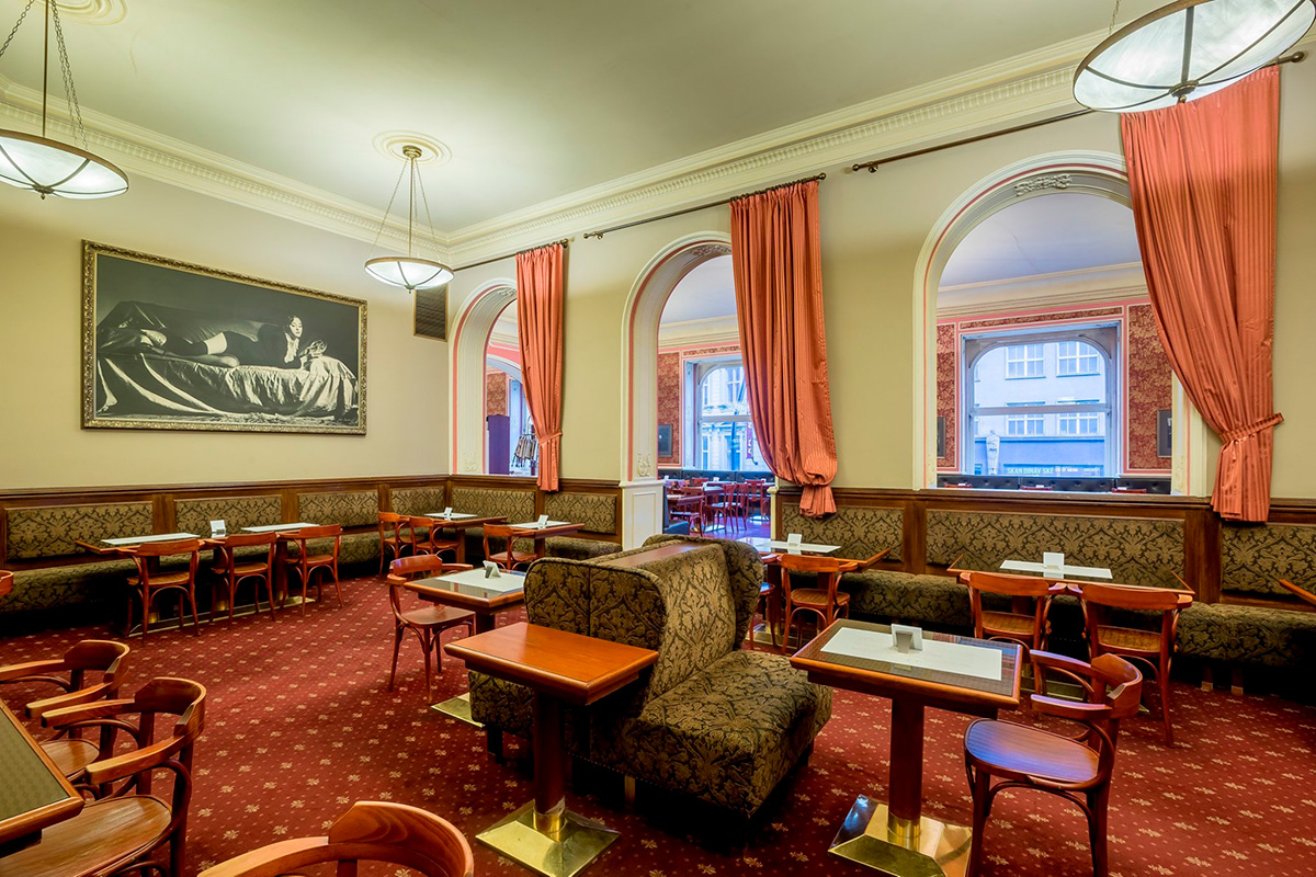 Это кафе с уникальной атмосферой и богатой историей было открыто в 1902 году. Здесь бывали Альберт Эйнштейн, Карел Чапек, Франц Кафка.