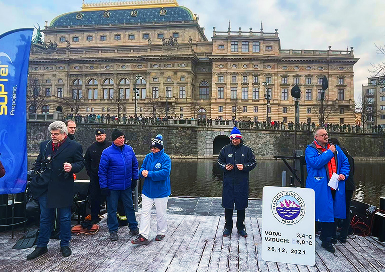 Утром 26 декабря в центре Праги прошел традиционный рождественский заплыв «Мемориал Альфреда Никодема». В 11:00 на берегу Влтавы напротив Национального театра собрались 360 «моржей» из Чехии, Словакии, Австрии, Польши, Германии, Великобритании, США и России.