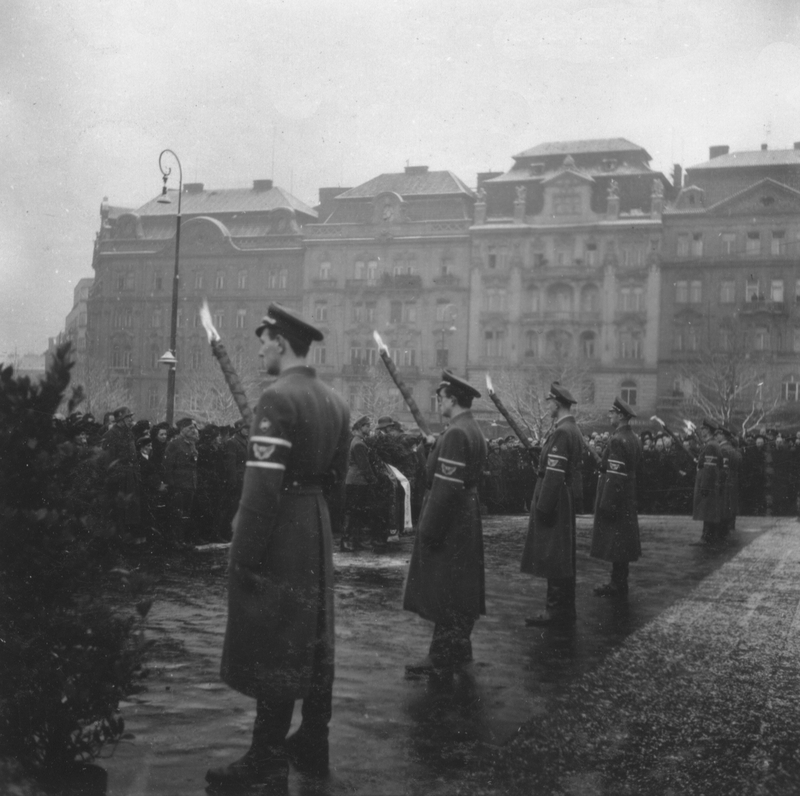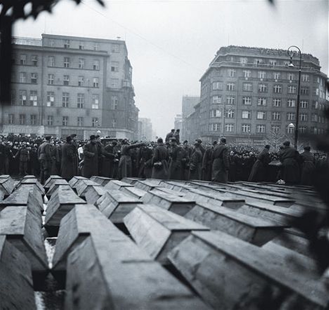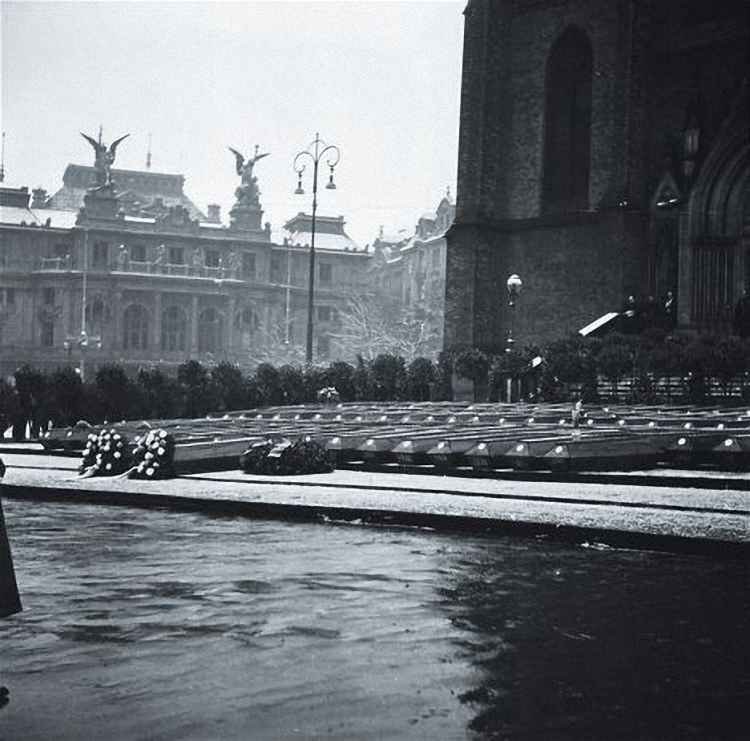 Прощание с жертвами бомбардировки на Reichsplatz (сегодня площадь náměstí Míru):