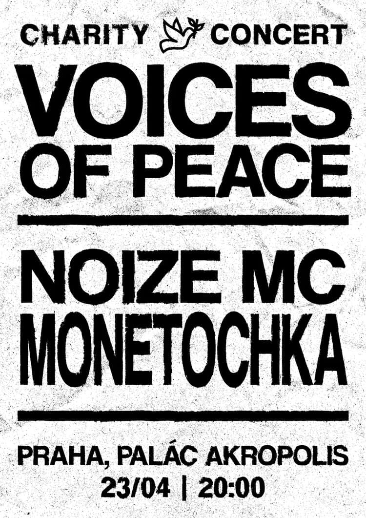 Российские музыканты Noize MC и Монеточка дадут в Праге благотворительный концерт в поддержку Украины. Выступление состоится 23 апреля в рамках проекта «Голоса мира» (Voices of Peace) на сцене Palác Akropolis. Об этом сообщил организатор концерта.