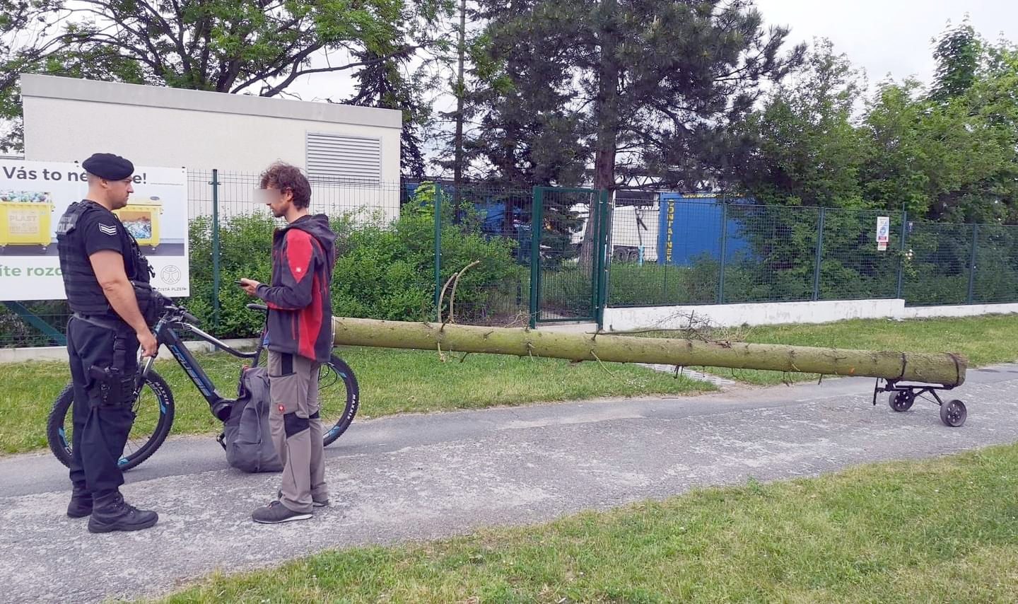 Полиция чешского города Пльзень рассказала о нетипичном случае. Во время патрулирования правоохранители заметили на улице Эдварда Бенеша велосипедиста, тянувшего за собой пятиметровое еловое бревно с приделанными колесиками.