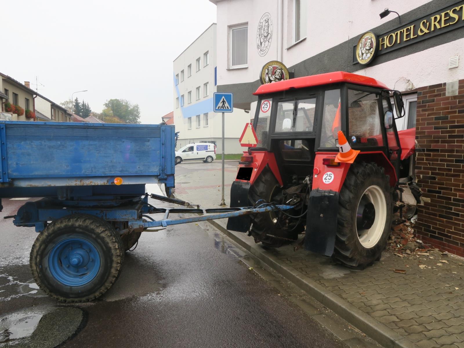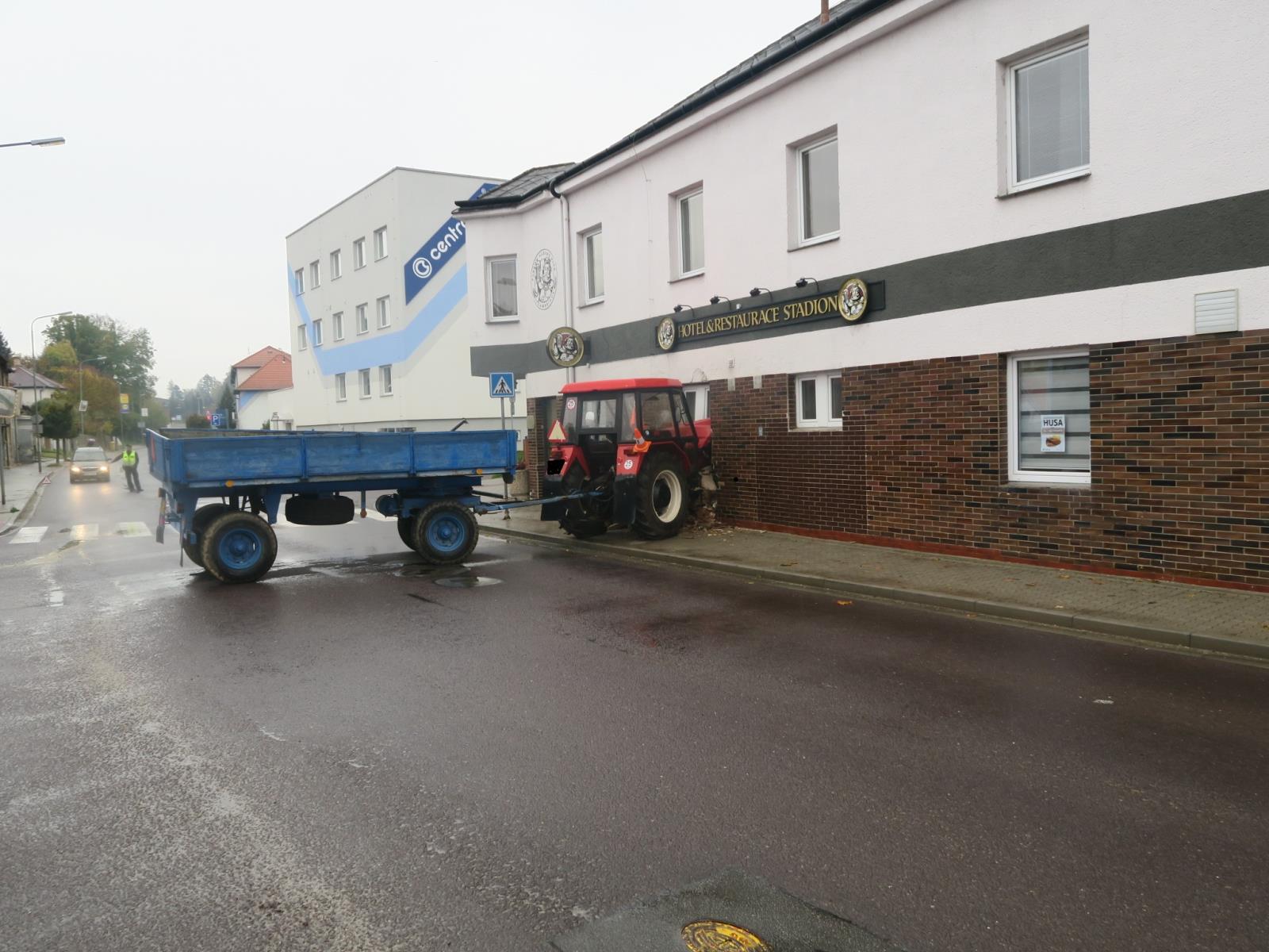 Необычное ДТП произошло в чешском города Дачице (Dačice, Южночешский край). Там водитель припарковал трактор с прицепом на пригорке, но забыл поставить его на тормоз. В результате многотонная сельхозмашина покатилась и врезалась в здание отеля.