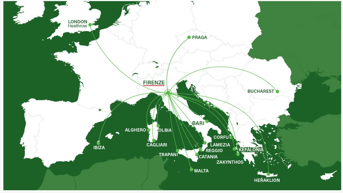 Итальянский перевозчик AeroItalia анонсировал запуск сразу 24 прямых авиалиний из своего базового аэропорта во Флоренции. В числе направлений оказалась и Прага.