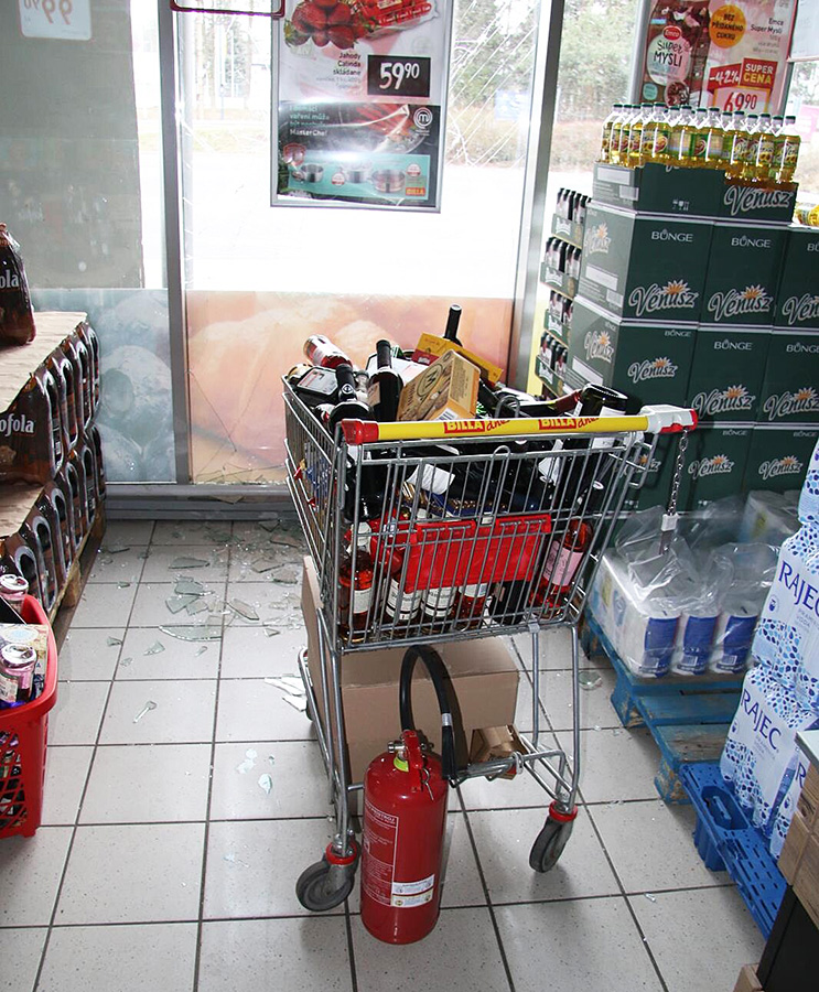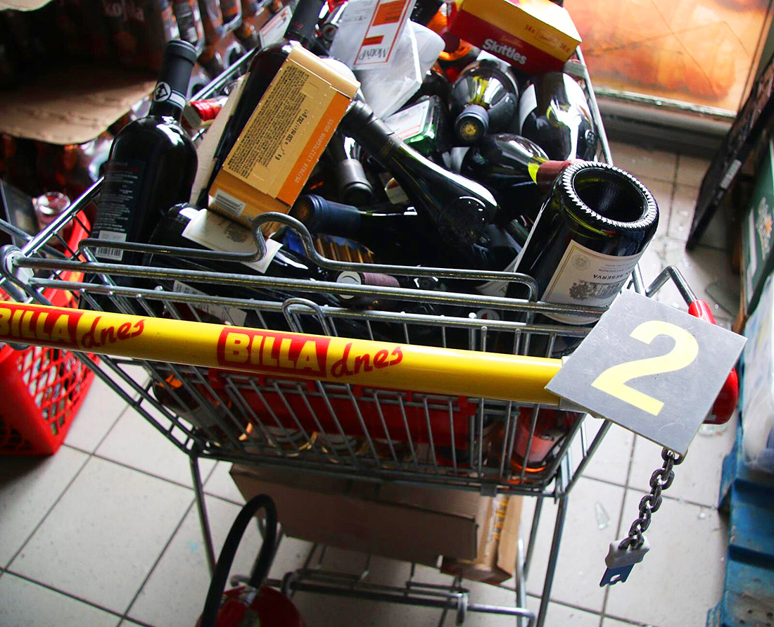 Затем он набил пять тележек и две корзинки разнообразными продуктами (преимущественно алкоголем) на общую сумму 175 тыс. крон. Однако преступник не продумал, как будет выносить все это добро – через крышу сделать это оказалась нереально.