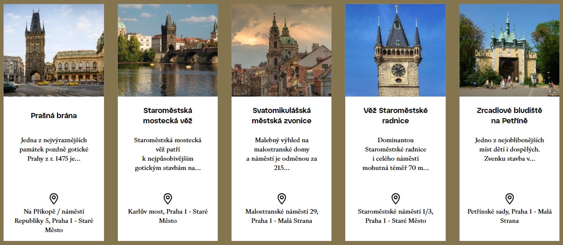 Скидка «Ranní sleva» действует каждый день и распространяется на следующие объекты (по клику на название можно найти подробное описание, адрес и график работы каждой достопримечательности):