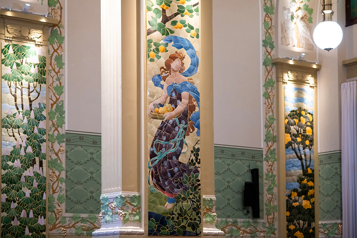 Кроме впечатляющих сводов посетители увидят потрясающие керамические мозаики 1903 года авторства чешского художника Яна Бенеша.