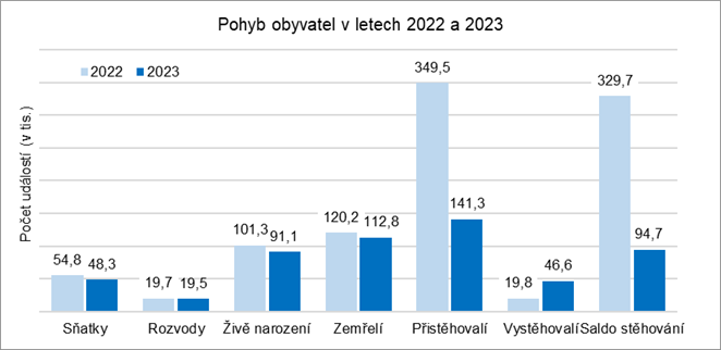 За год на свет в Чехии появились 91149 детей (это самый низкий результат за последние 22 года), тогда как умерли 112795 жителей. Тем самым, естественная убыль населения составила 21646 человек.
