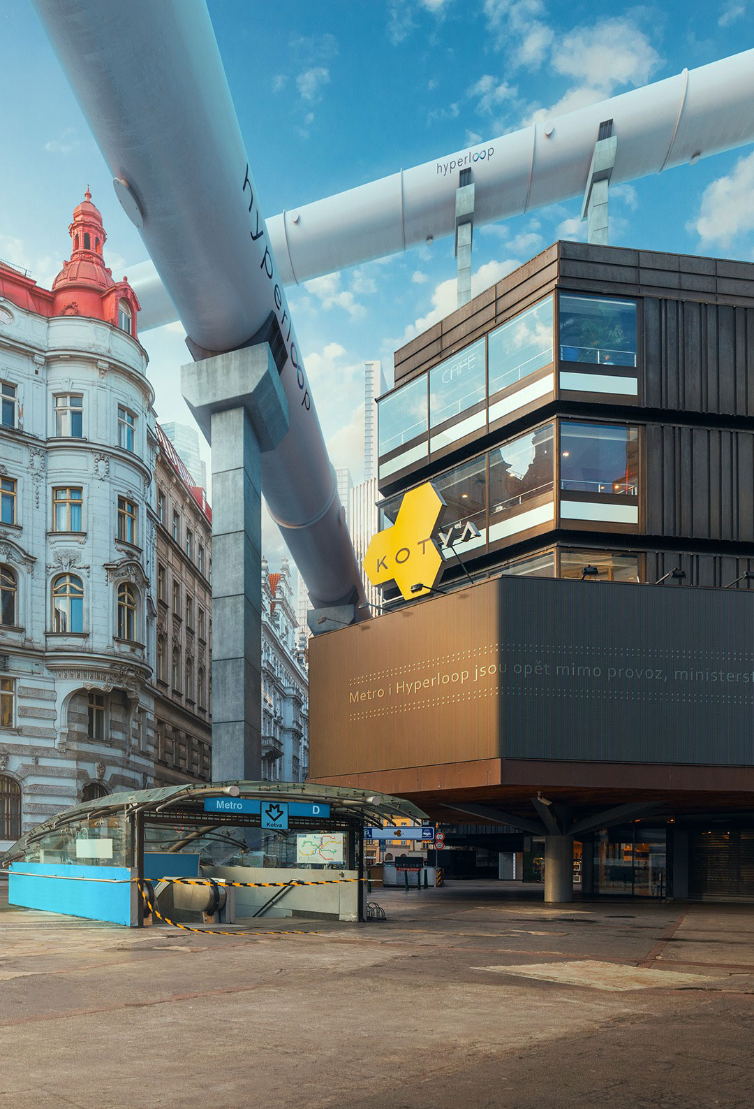 Торговый центр Kotva через информационное табло сообщает, что метро и Hyperloop (проект вакуумного поезда от Илона Маска) опять "mimo provoz". Интересно, что стряслось?