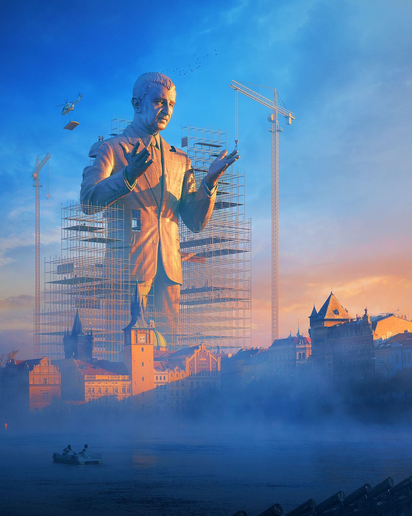 Гигантский памятник Андрею Бабишу в самом центре Праги. Эту работу автор представил в 2020 году, когда миллиардер возглавлял чешское правительство и своими действиями снискал нелюбовь значительной части общества: