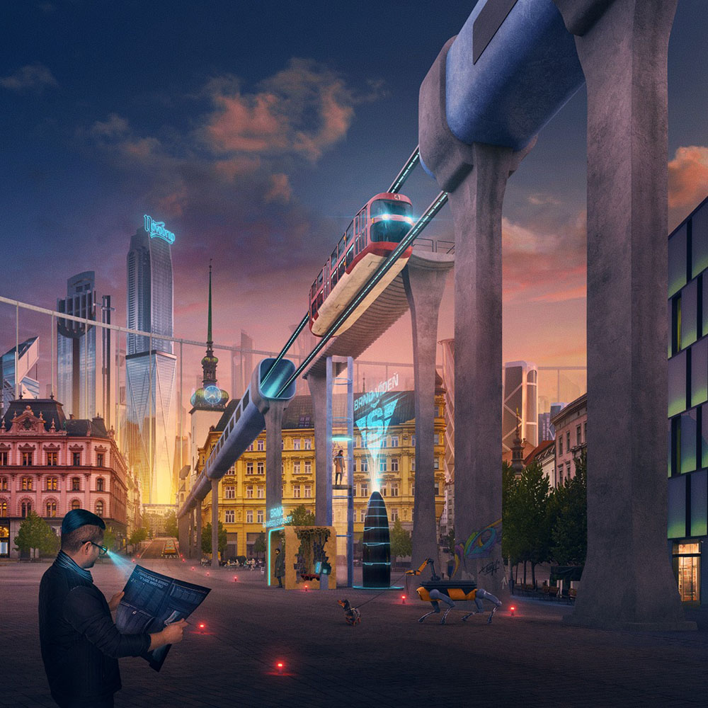 В 2019 году работы чешского художника Томаша Мюллера (Tomáš Müller) с изображением футуристической Праги облетели соцсети. Автор создал их для газеты Hospodářské noviny, причем без помощи нейросетей. За счет этого детализированные рисунки смотрятся интересно и по сей день.