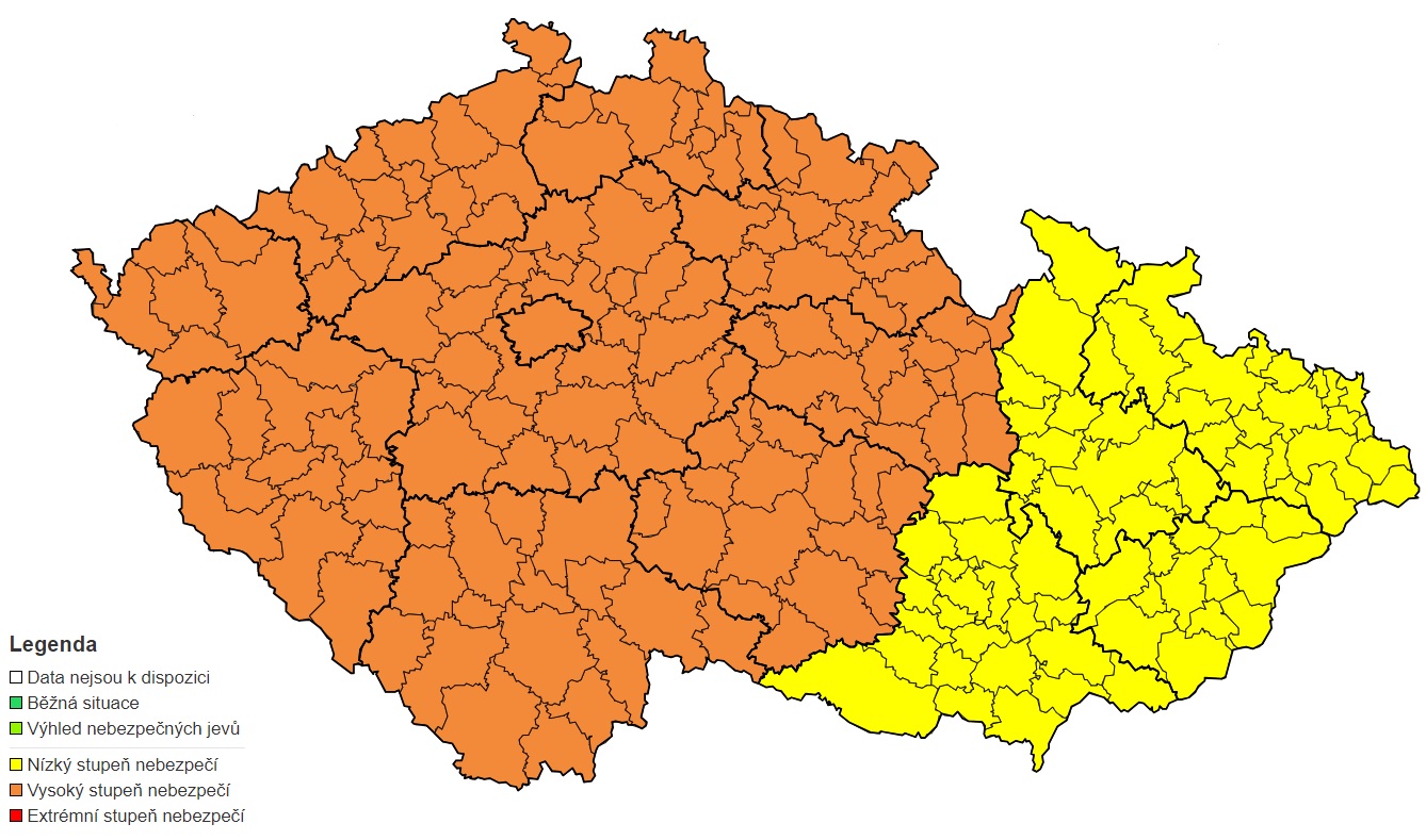 Чешский гидрометеорологический институт продлил объявленное накануне предупреждение о сильных и очень сильных грозах. Теперь оно распространяется и на воскресенье, 18 августа (до 03:00 понедельника).