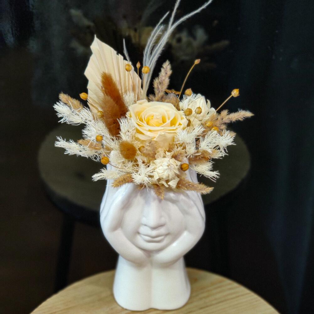 Подарок два в одном, который будет радовать учителя не один сезон. Даже если сухоцветы со временем разонравятся, их можно убрать, а маленькое кашпо оставить в качестве элемента декора школьного кабинета или дома.