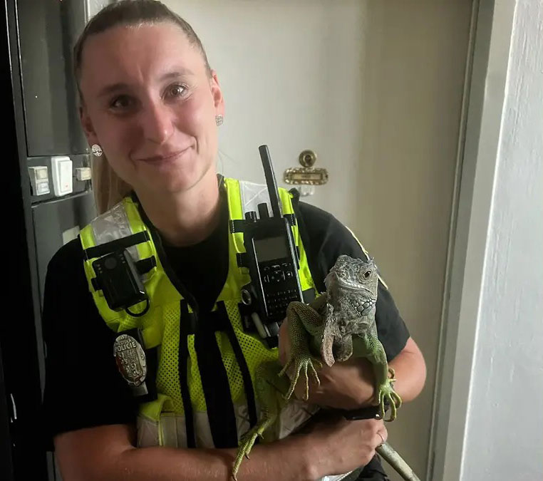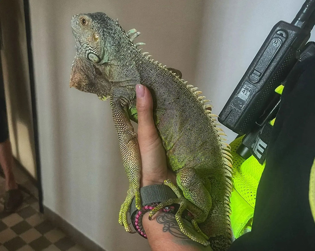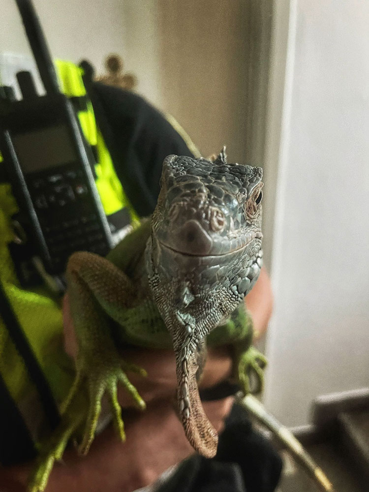 Полицейские быстро выяснили, что в соседнем подъезде живет человек, который содержит ящериц, однако никого из членов семьи дома не оказалось, а связаться с ним по телефону не удалось. Поэтому патрульные временно передали игуану на попечение специалиста из службы отлова животных.