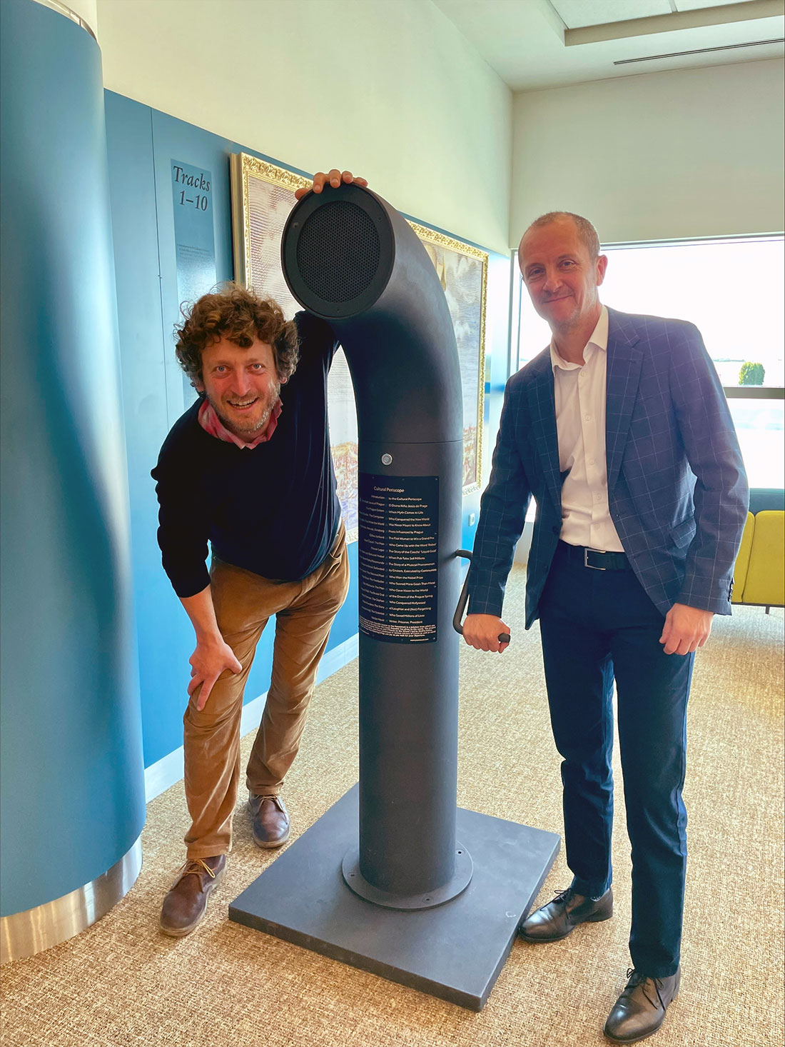 «Каждый аэропорт – это ворота между странами. В то же время это своего рода современная площадь, где люди останавливаются и имеют время, чтобы сделать паузу, поразмыслить и рассмотреть каждую деталь. Поэтому мы подумали, что будет здорово, если пассажиры смогут заполнить это время, слушая симфонию Дворжака или стихотворение Сейферта.