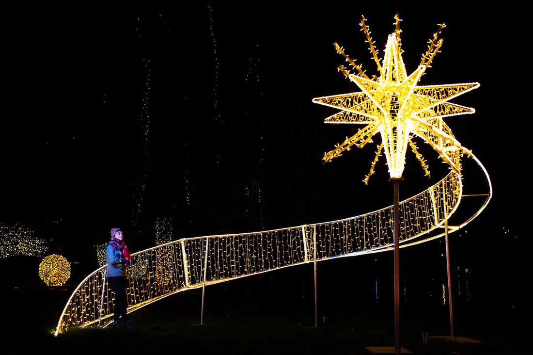 В пятницу, 1 ноября, на территории спортивно-развлекательного комплекса Žluté lázně в пражском районе Подоли открылся парк световых инсталляций под названием «Světla vyprávějí 2024». Он предлагает гостям осмотреть около 170 разнообразных скульптур, созданных при помощи 400 тыс. лампочек.