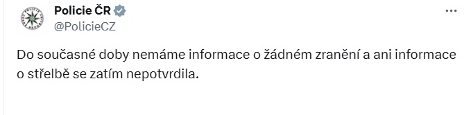 «Мы получили информацию о возможной стрельбе. Полиция работает, но пока я не могу подтвердить или опровергнуть эту информацию», - сказал представитель правоохранителей Ондржей Годан.