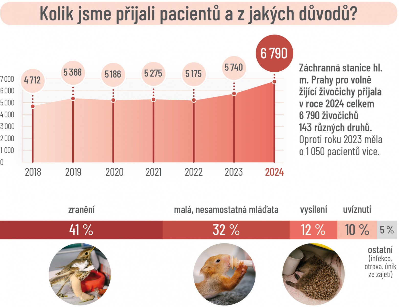 В прошлом 2024 году ветеринары Пражской станции спасения диких животных помогли 6790 представителям 143 разных видов. Это на 1050 больше, чем годом ранее, и самый высокий результат за всю историю сбора статистики. Об этом организация сообщила на своем официальном сайте.