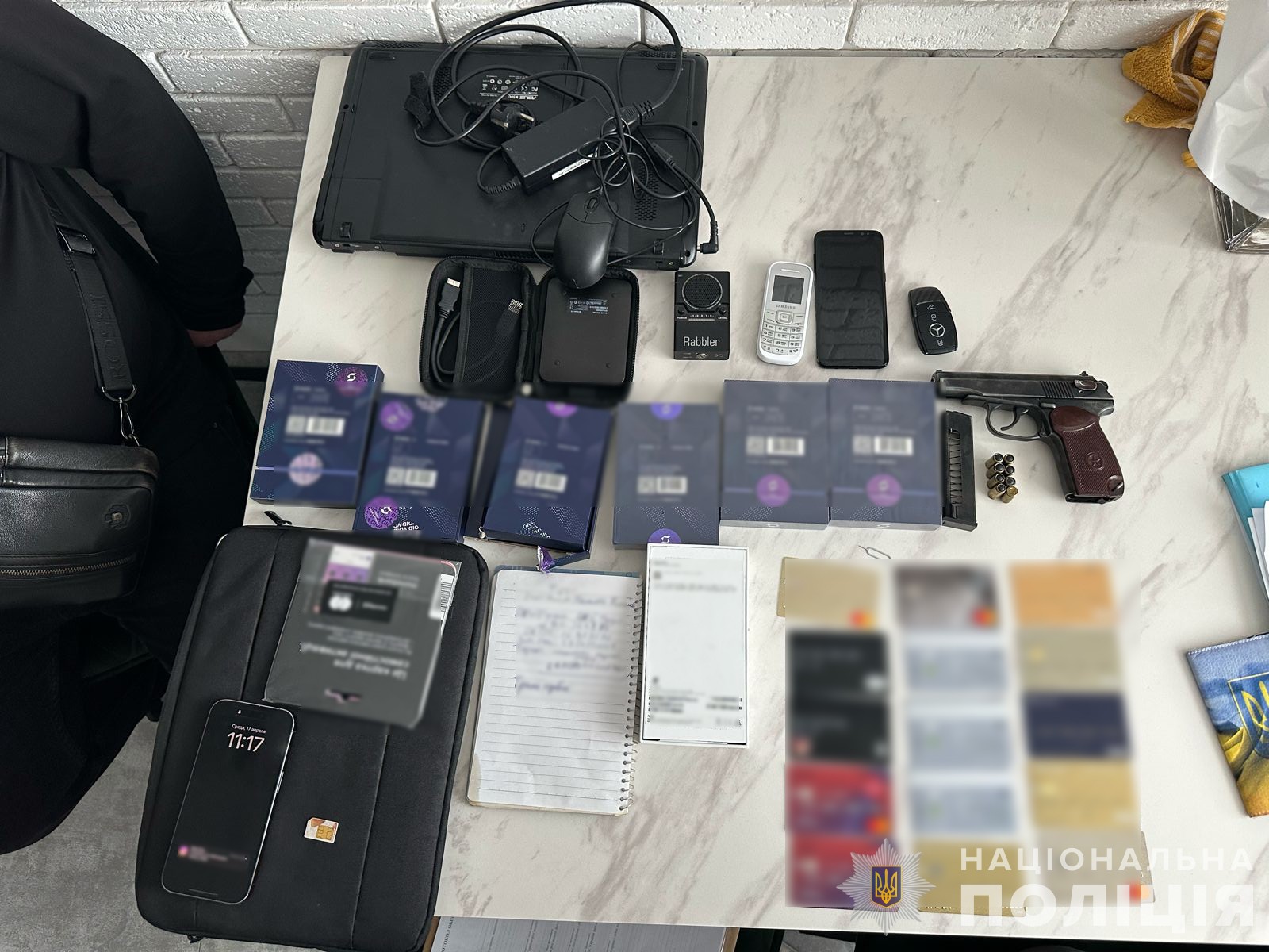 В ходе обысков в Украине криминалисты изъяли компьютерную технику и мобильные телефоны с доказательствами совершенных преступлений, а также элитные авто фигурантов и более 100 тыс. долларов в разной валюте.