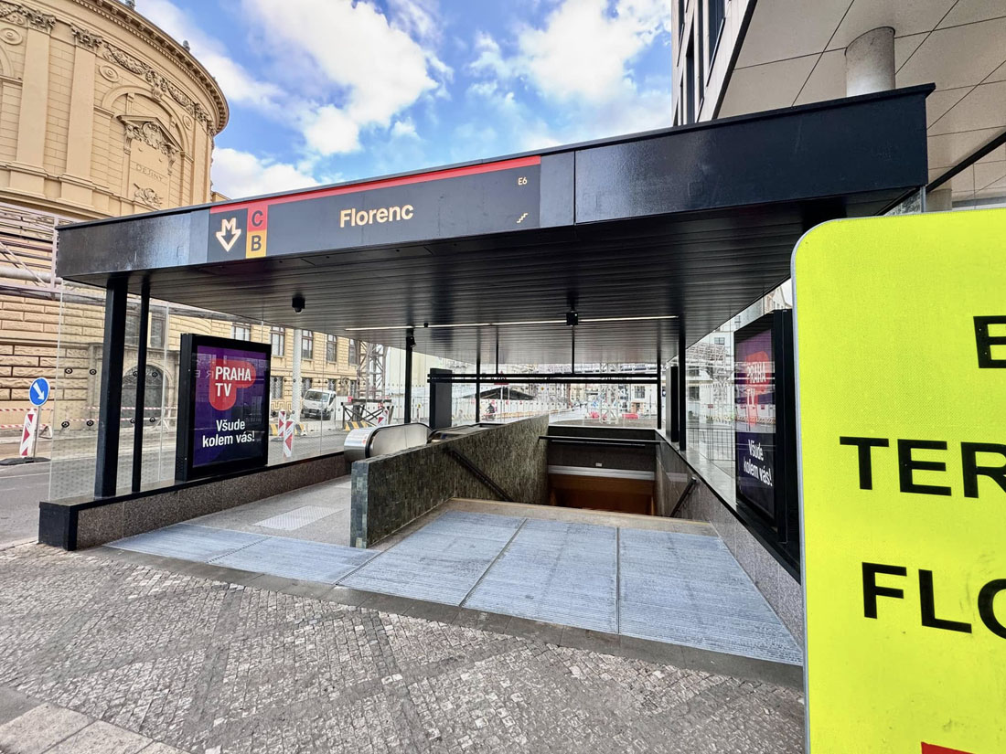 В пятницу, 31 января, Транспортное предприятие Праги спустя 970 дней вновь открыло второй вестибюль станции метро Florenc. Пока он работает в ограниченном режиме – пассажирам доступен только один выход (на улицу Křižíkova в направлении одноименного автобусного вокзала), который получил новый козырек и эскалатор.