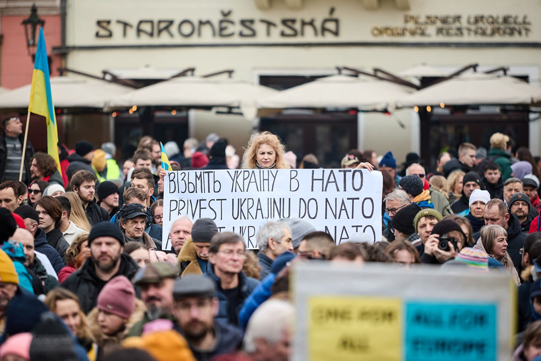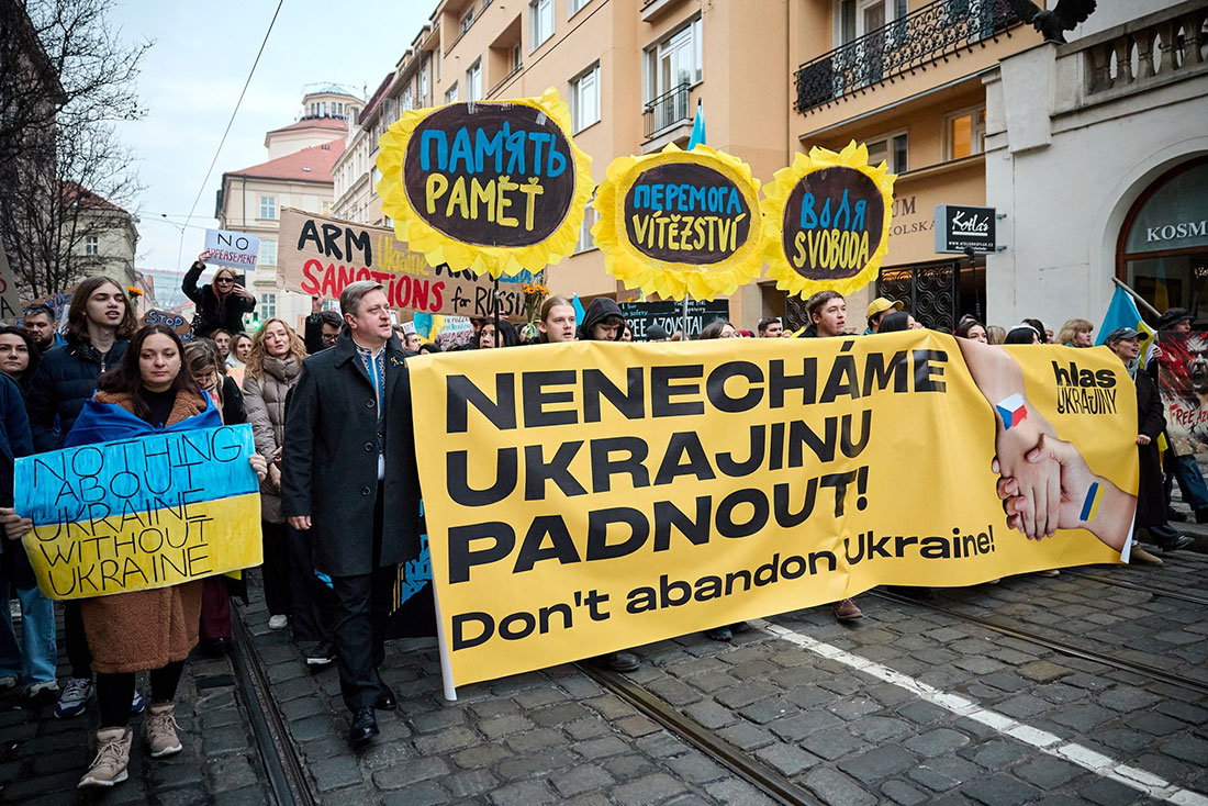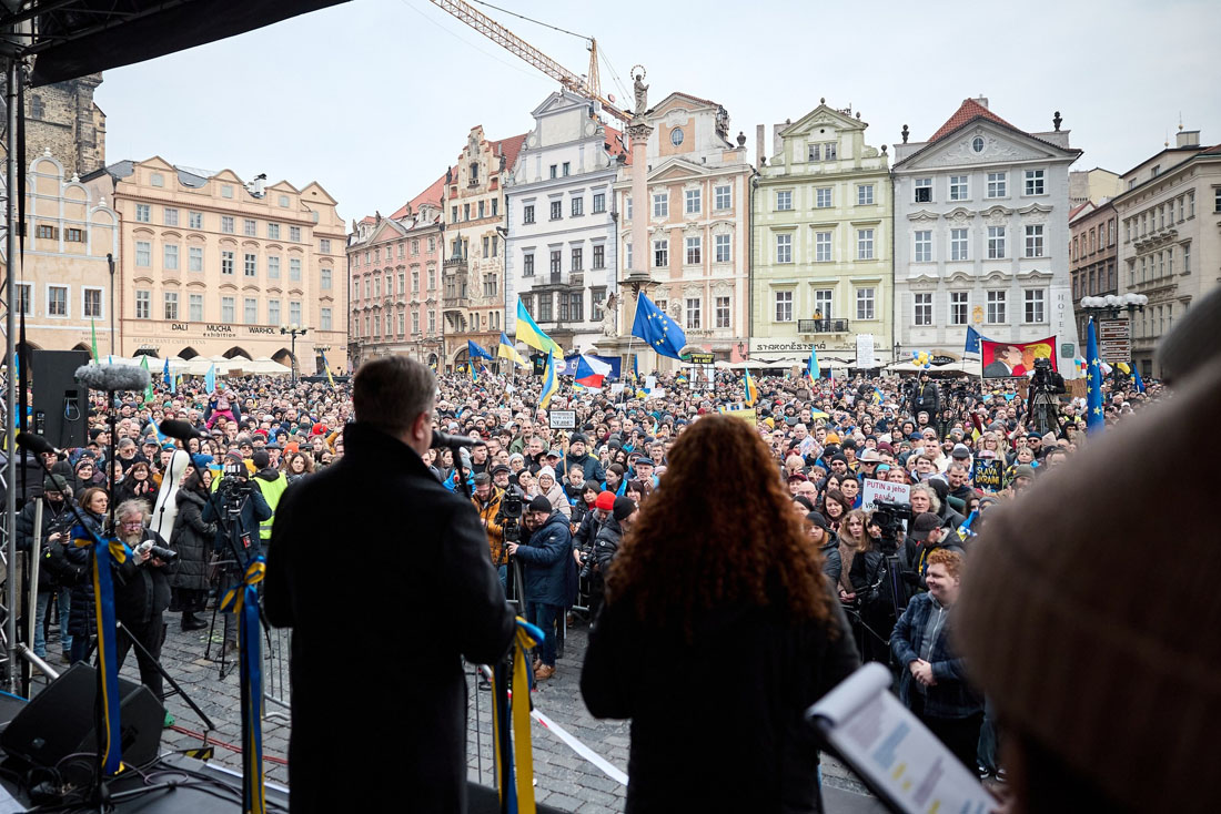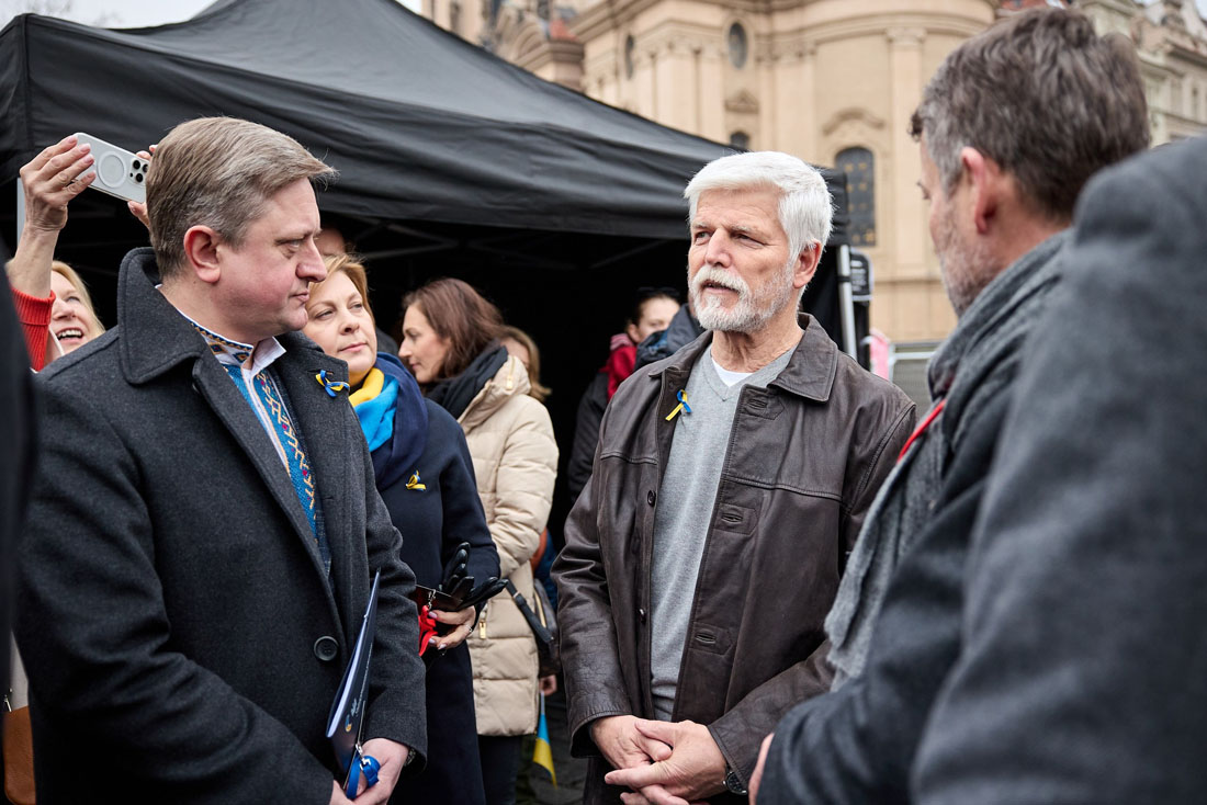 Чехия, по его мнению, должна продолжать настаивать на том, чтобы Украина и Европа участвовали в мирных переговорах. Он также поблагодарил людей за поддержку украинского государства, почеркнув, что если она ослабнет, то Украина не сможет договориться о мире, которого желает.
