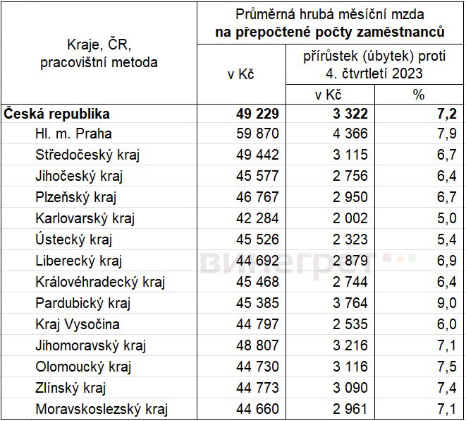 Средняя зарплата в столице в прошлом году была на 45,2% выше, чем в регионе с самым низким значением данного показателя (Карловарский край).