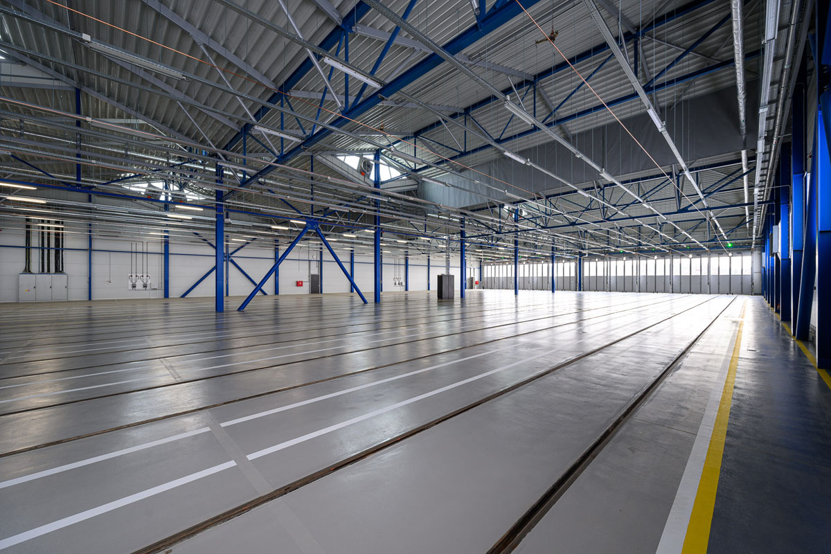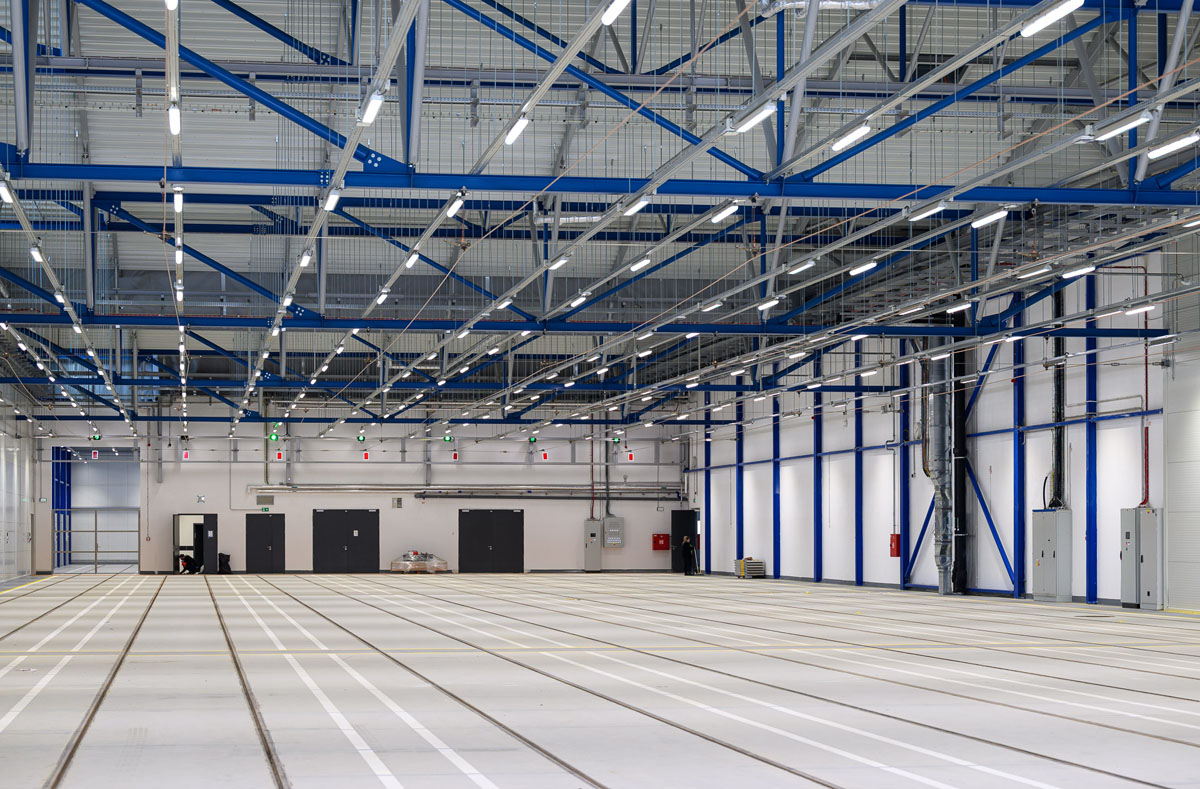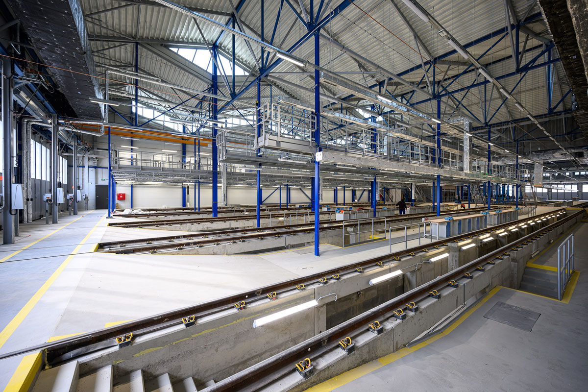 Новый объект построен полностью с нуля. Здание имеет 22 пути и разделено на две части — для отстоя и обслуживания.