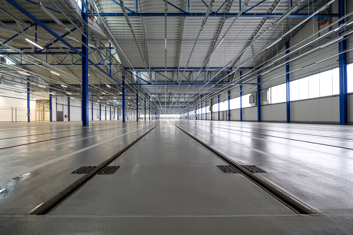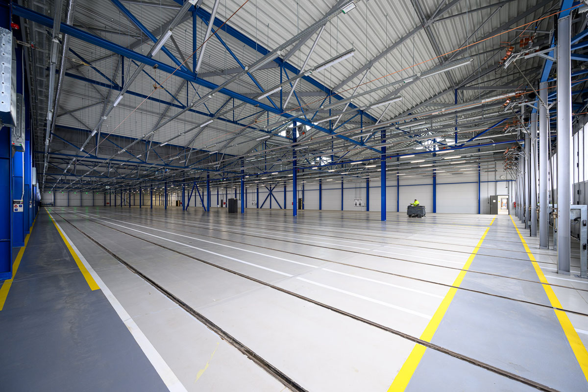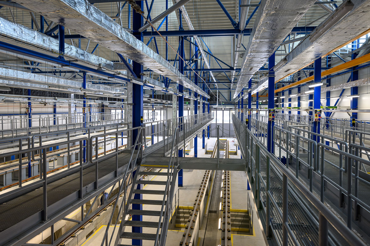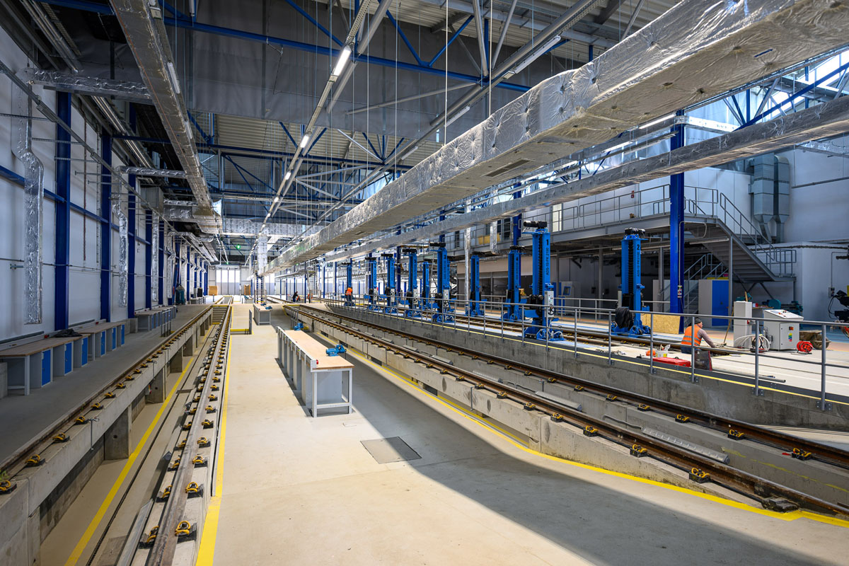Новый объект построен полностью с нуля. Здание имеет 22 пути и разделено на две части — для отстоя и обслуживания.