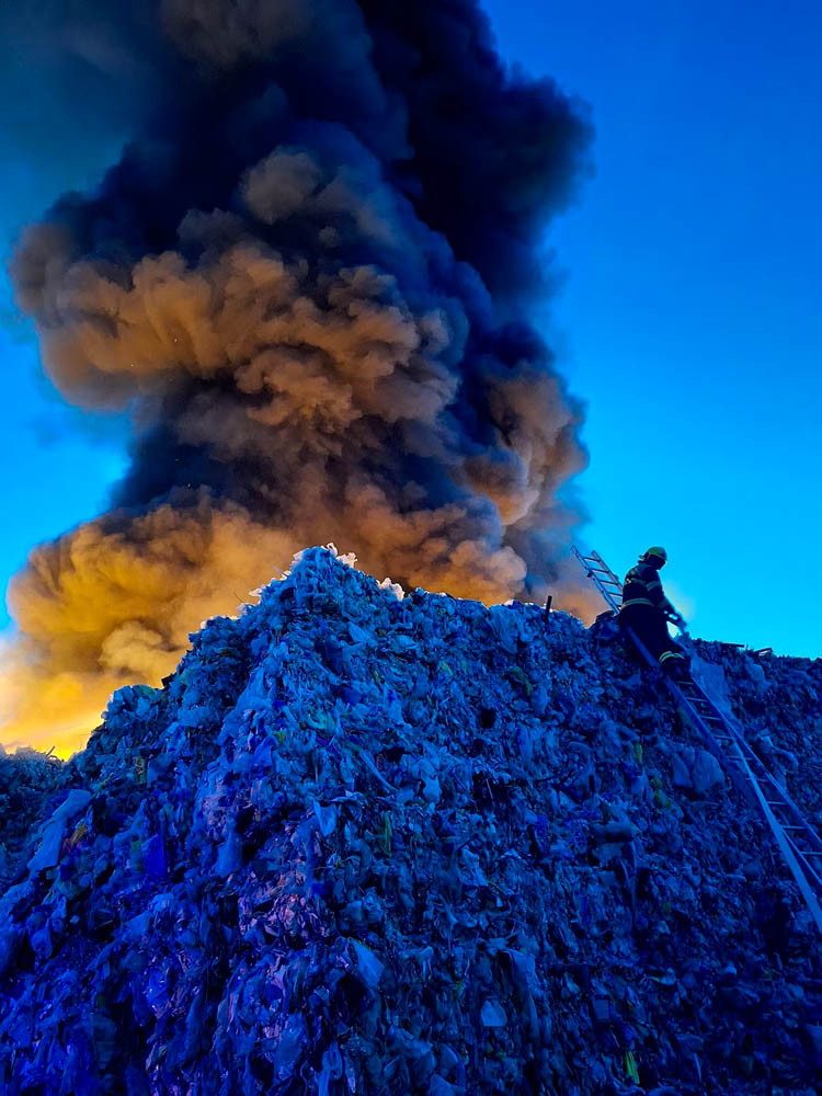 Ночью пожарным удалось заполнить промежутки между кучами пластика пеной, что предотвратило распространение огня на другую часть свалки.