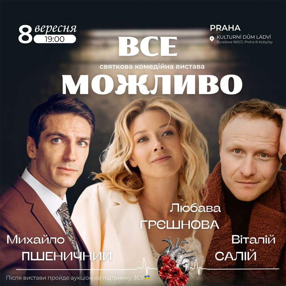 В Праге покажут комедийный спектакль «Все возможно», в котором играют звездные актеры Любава Грешнова, Михаил Пшеничный и Виталий Салий.