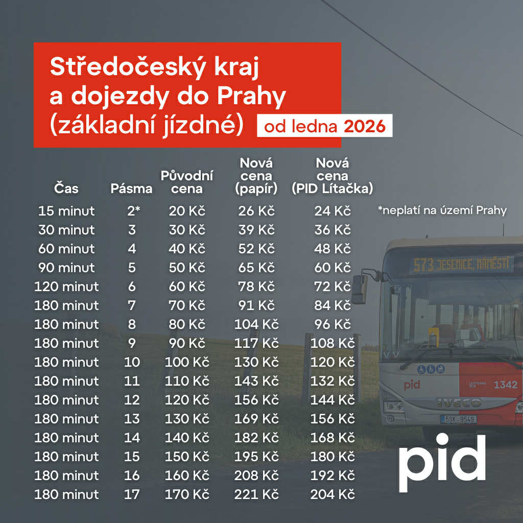 Также горсовет Праги утвердил подорожание билетов на автобусы и электрички в Среднечешском крае (в единой транспортной системе PID). Там с 1 января бумажные билеты подорожают на 30%, а электронные — на 20%.