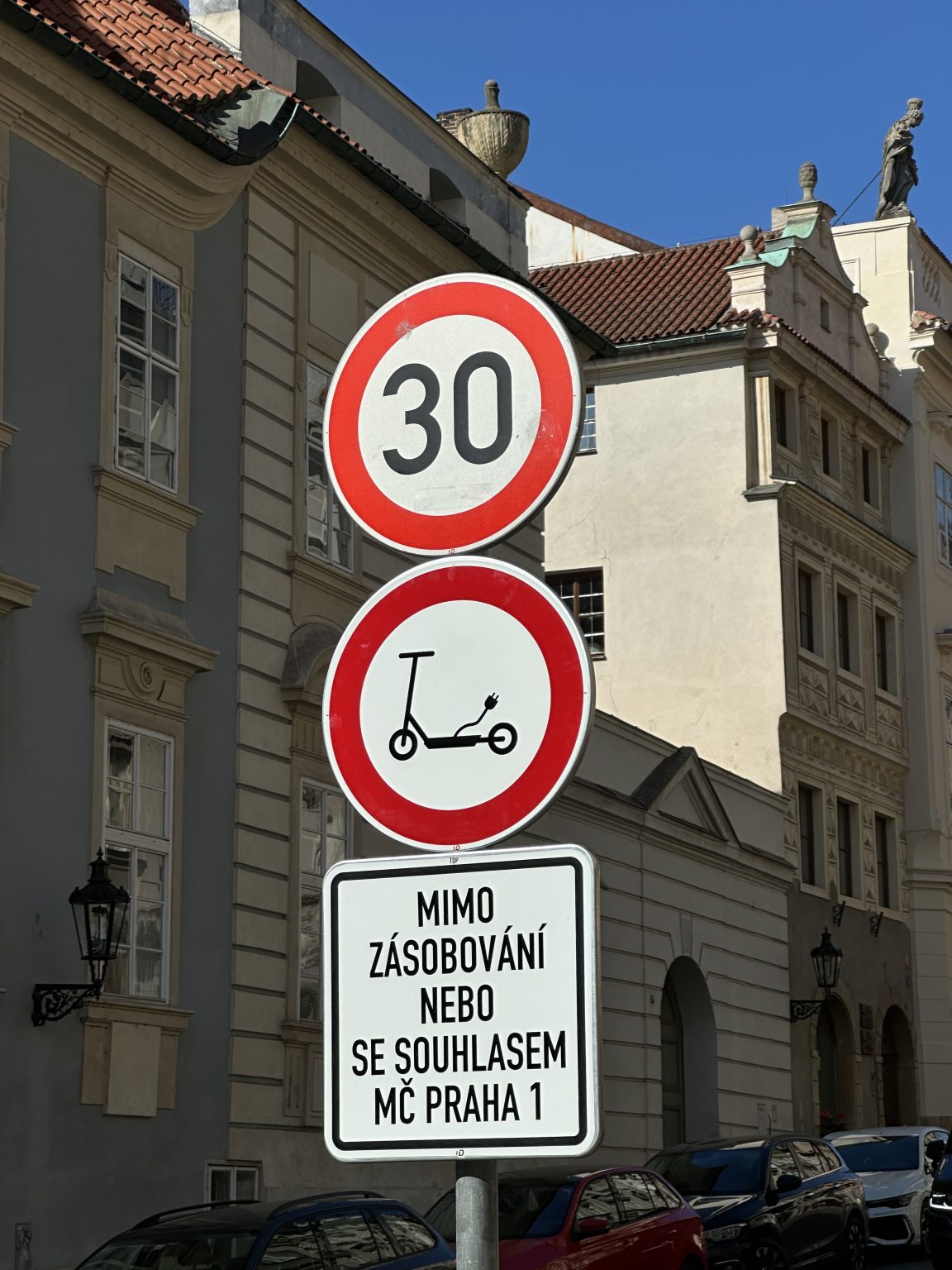 Первые знаки установили в начале и конце улицы Nerudova возле Малостранской площади, а также на улице Úvoz. По данным муниципальных властей, именно там чаще всего происходили столкновения неосмотрительных самокатчиков с пешеходами.