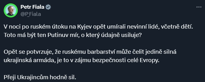 Желаю украинцам много сил», - написал глава чешского правительства Петр Фиала.