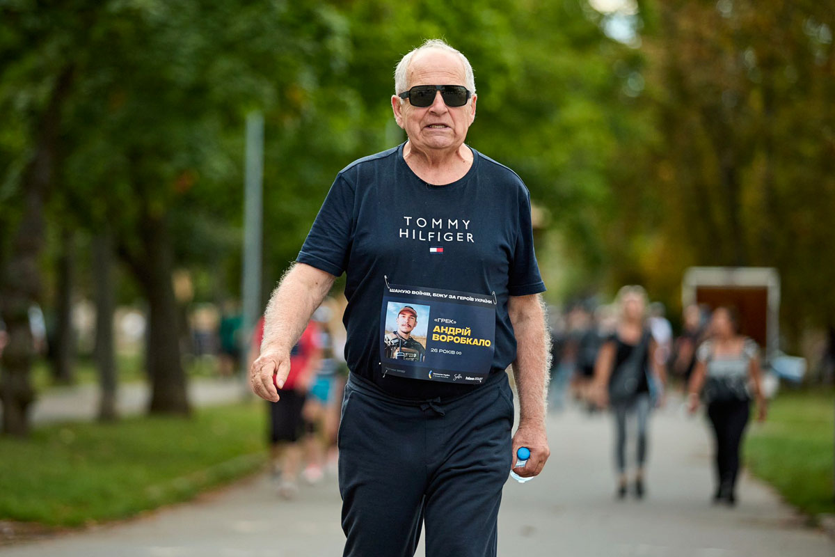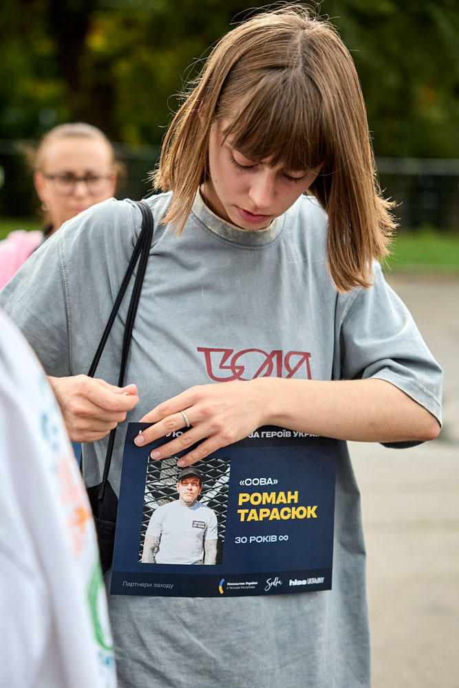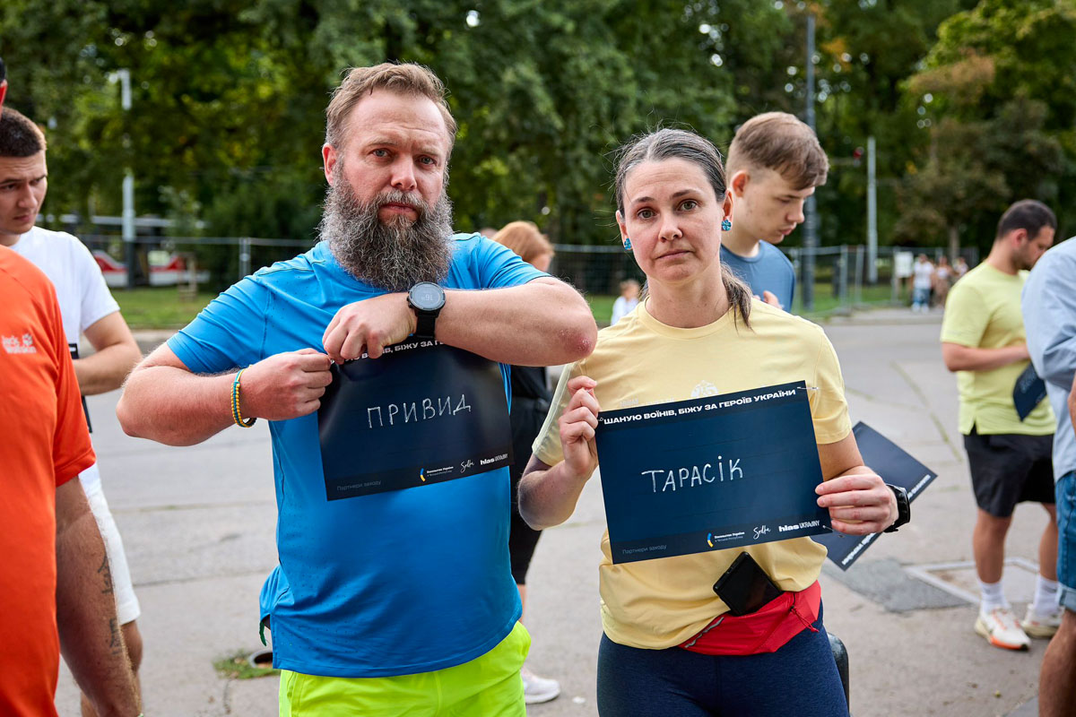 Каждый участник имел на груди написанное имя одного из погибших защитников, которому посвятил свой забег.