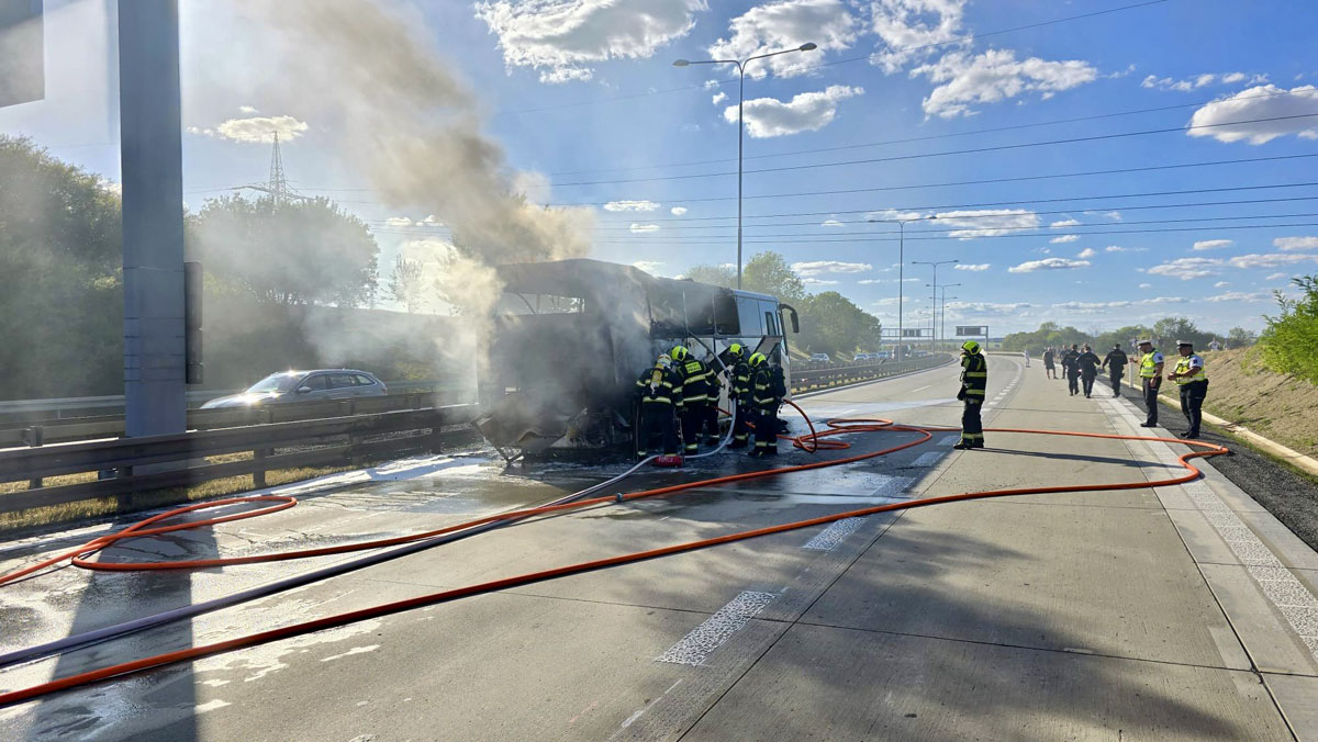 Днем в воскресенье, 31 августа, на семнадцатом километре пражской кольцевой автомагистрали (D0) прямо во время движения загорелся рейсовый автобус.