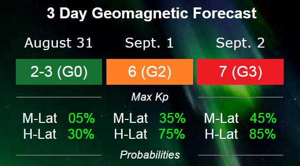 В ночь на вторник, 2 сентября, существует высокая вероятность наблюдения северного сияния в Чехии. Явление стало возможным из-за серии вспышек на Солнце, которые произошли 30 августа.