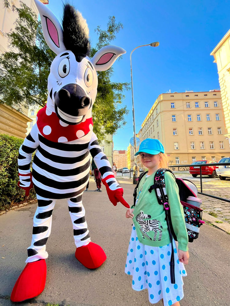 В Праге зебра напомнила детям о правилах безопасности при переходе улиц