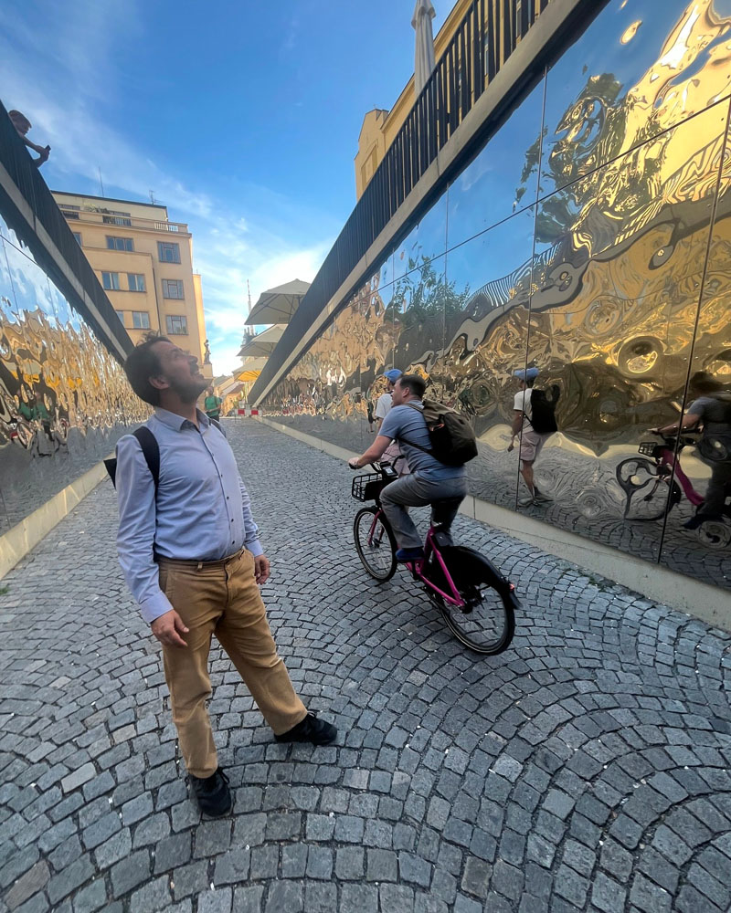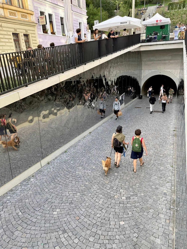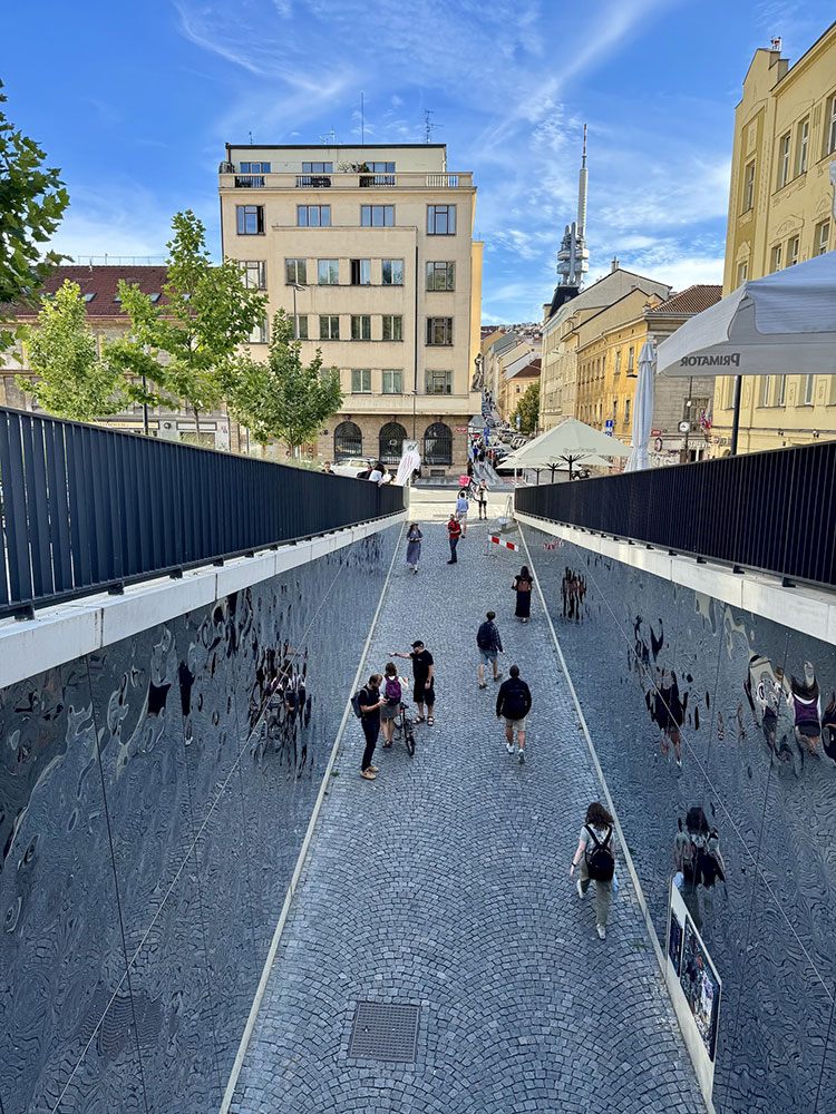 Вход в Жижковский тоннель в Праге украсили кривыми зеркалами