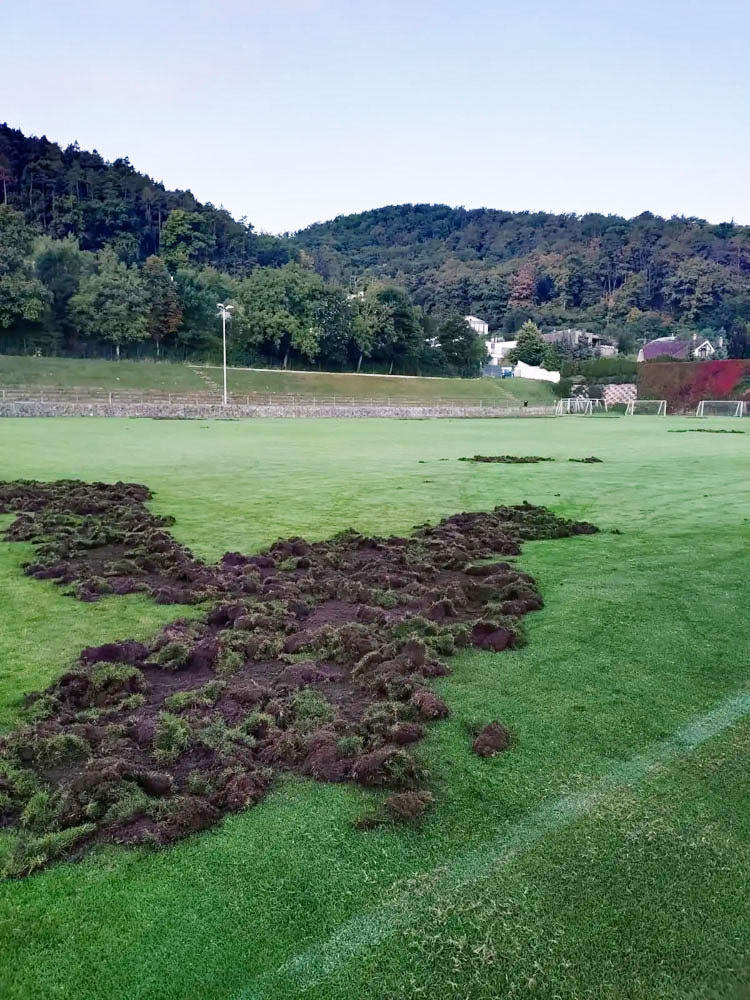 Вместе со своими семьями они по мере сил ликвидировали причиненный ущерб. В нескольких местах кабаны разрыли газон так сильно, что сделали его непригодным для проведения официальных матчей.