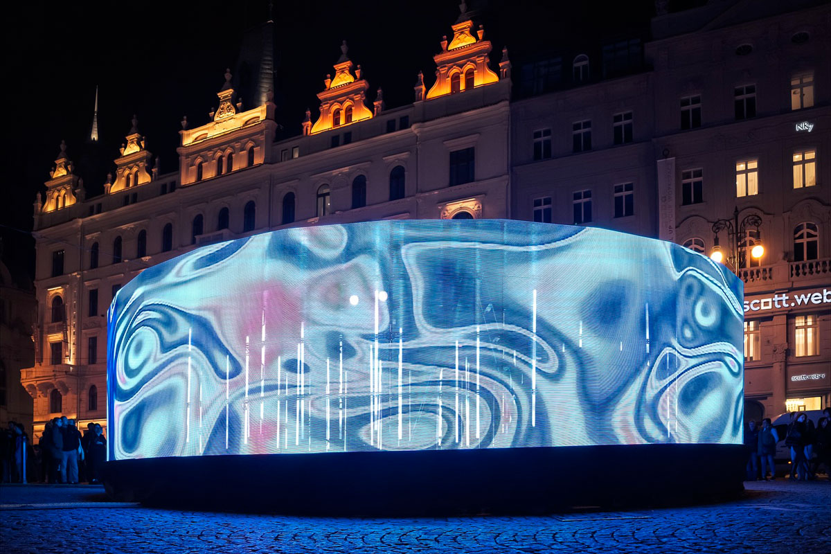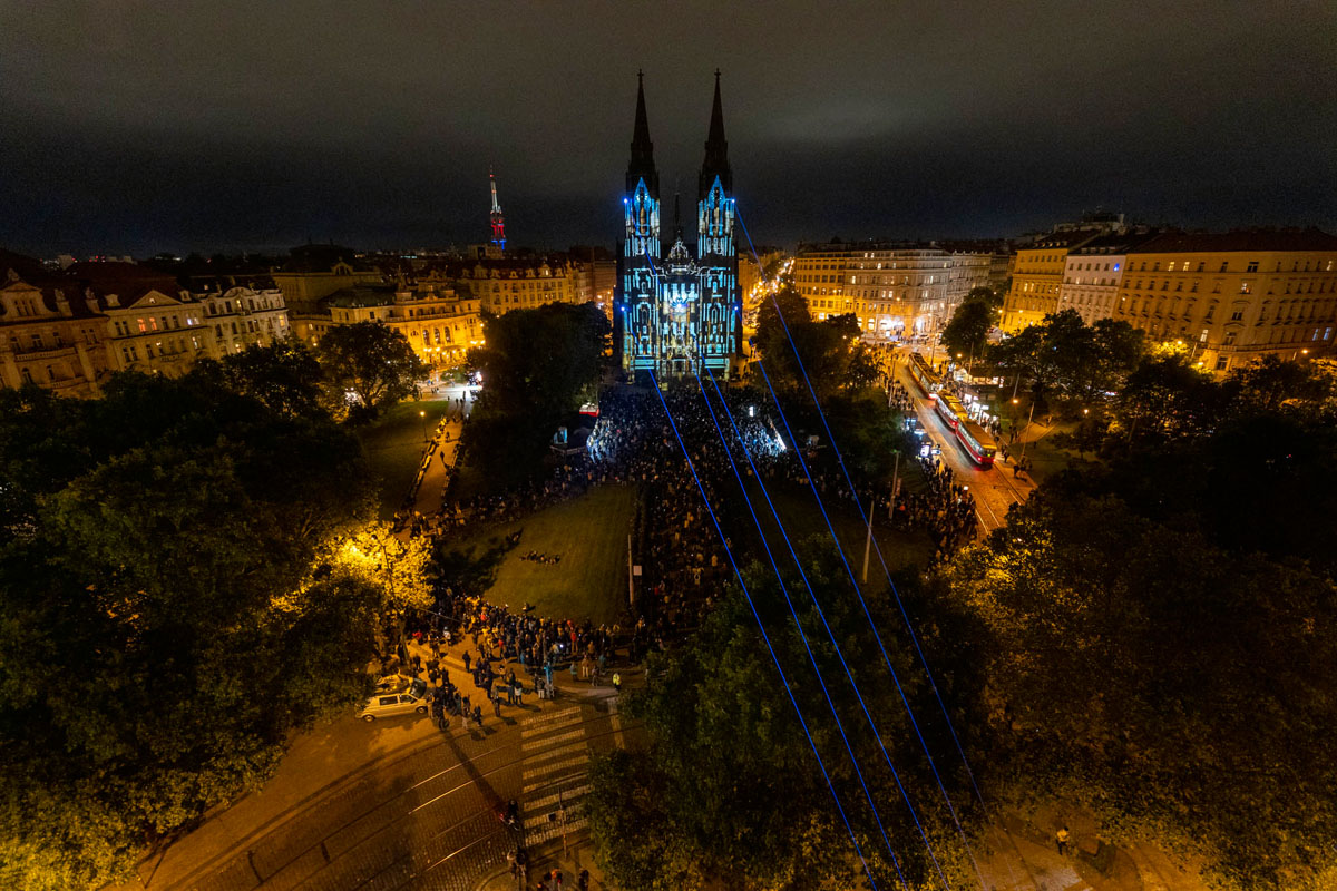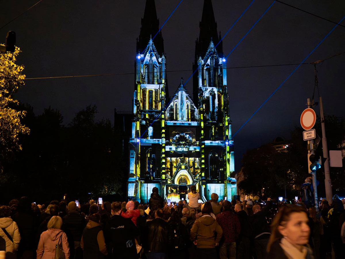 На фасад Базилики Святой Людмилы на площади Мира спроецировали 7-минутный ролик под названием «Бесконечный ритм города» от испанской студии V.P.M.: