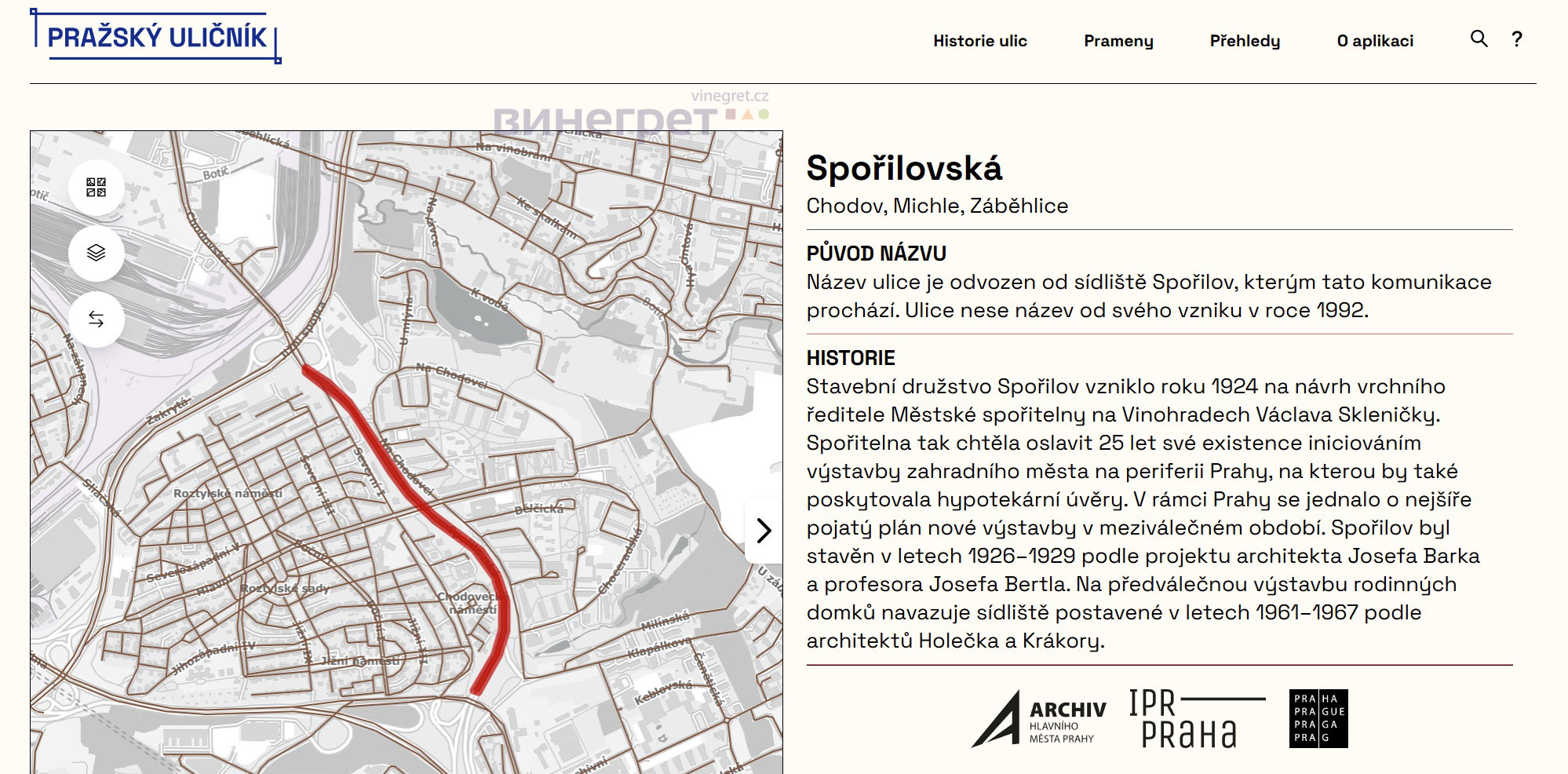 Пражский городской архив совместно с Институтом планирования и развития Праги запустил новый онлайн-проект Pražský uličník. Он предлагает возможность бесплатно и легко найти основную информацию о происхождении названий всех столичных улиц, площадей, парков и набережных.