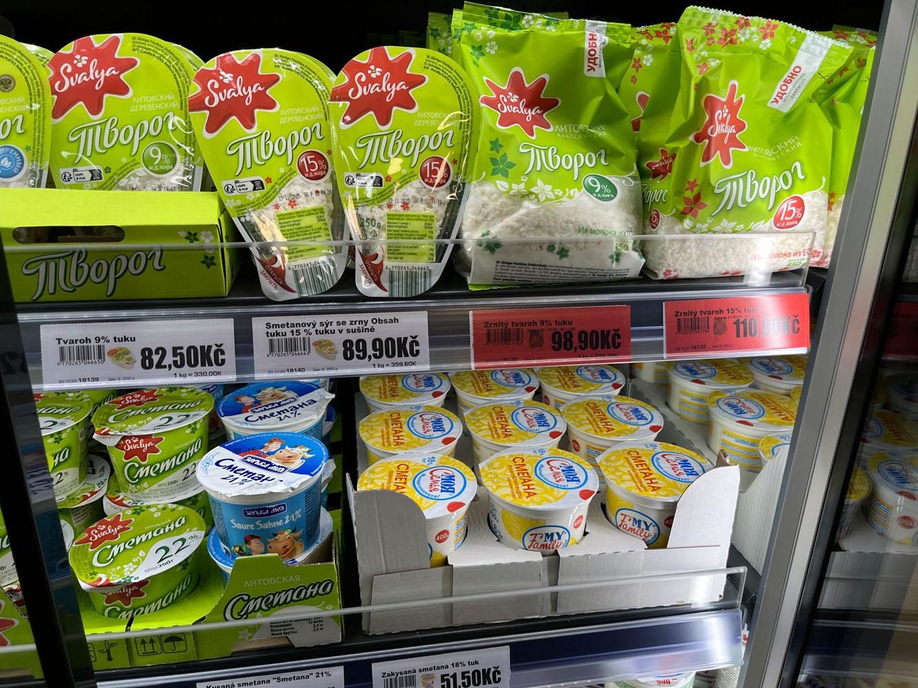 Вкусный творог, жирная сметана, кефир, ряженка, нежное сливочное масло, сыры, и конечно «правильный» майонез, который в обычных чешских супермаркетах не найти.