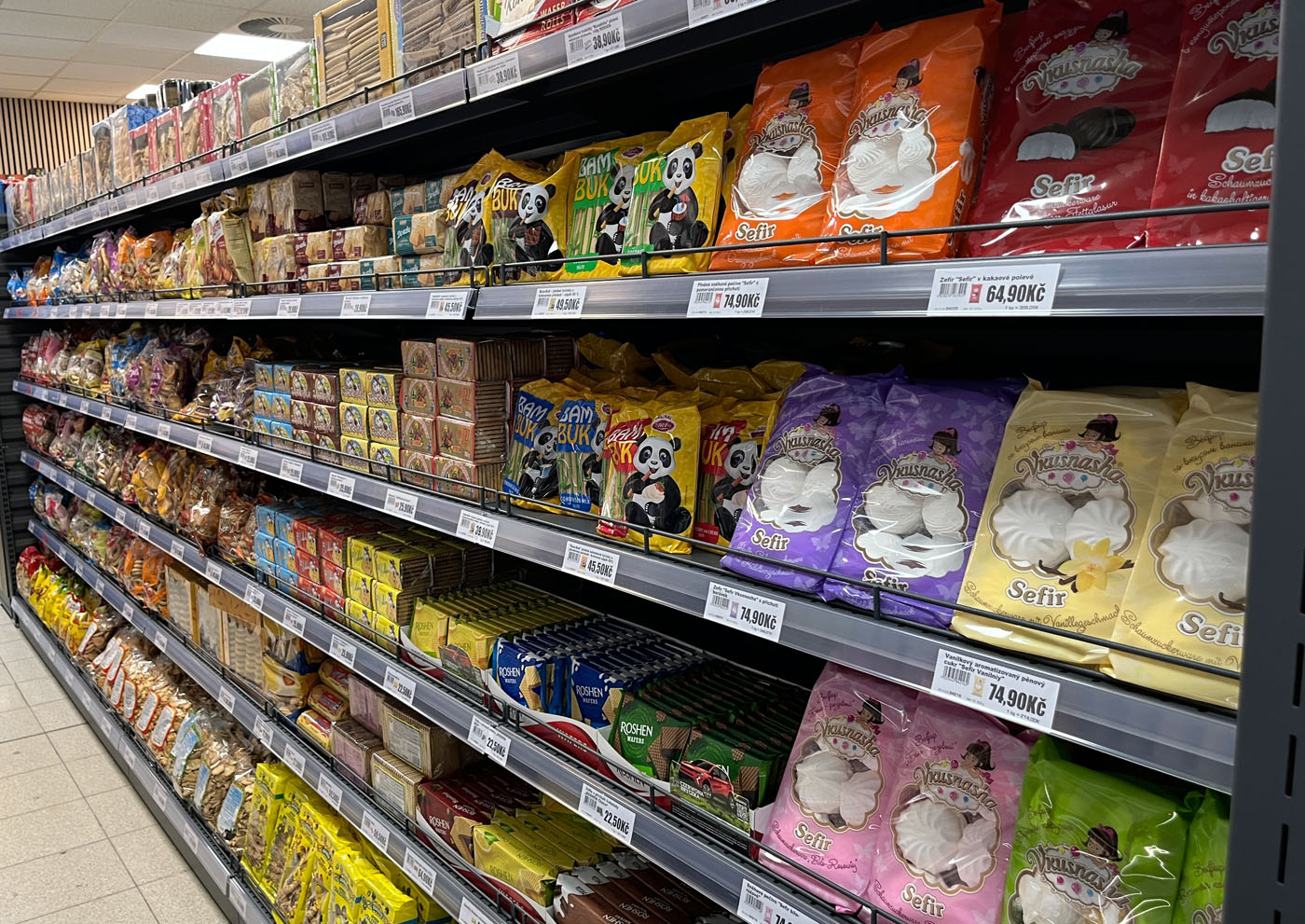 Огромный выбор любимых с детства сладостей: эклеры, птичье молоко, «картошка», конфеты, творожные сырки, халва, пряники, зефир, пастила, сгущенка, грузинские и украинские газировки, соки, всегда в наличии знаменитый «Киевский торт».