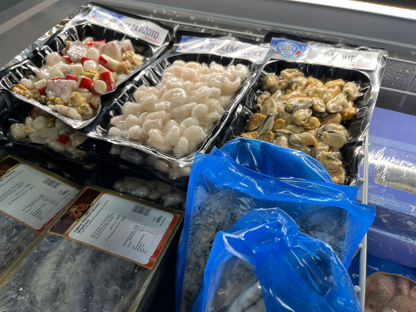 Большой ассортимент замороженных морепродуктов и полуфабрикатов, которые всегда выручат, если нужно быстро накрыть на стол – нежные вареники с различными начинками, блинчики, пельмени, манты, хинкали и многое другое. В упаковке и на развес.
