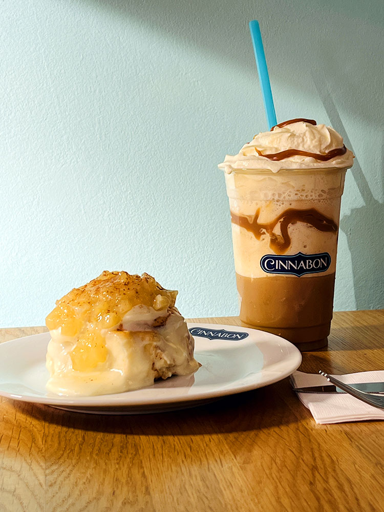 Сеть прославилась по всему миру своим главным блюдом — булочкой с корицей, политой густой сливочной глазурью.