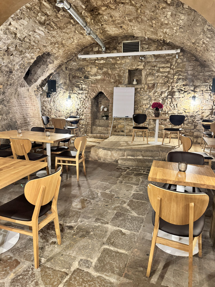 Часть зала на первом этаже можно отделить для закрытой вечеринки, а внизу имеется отдельное просторное помещение, где вас никто не побеспокоит.