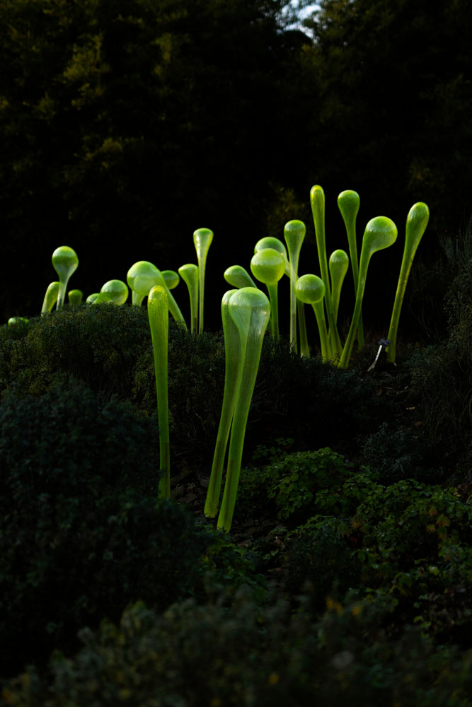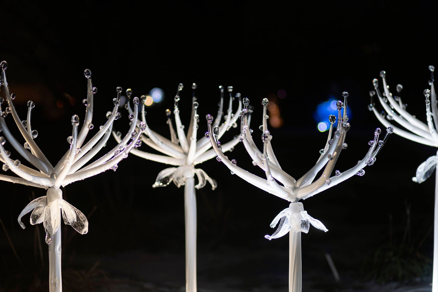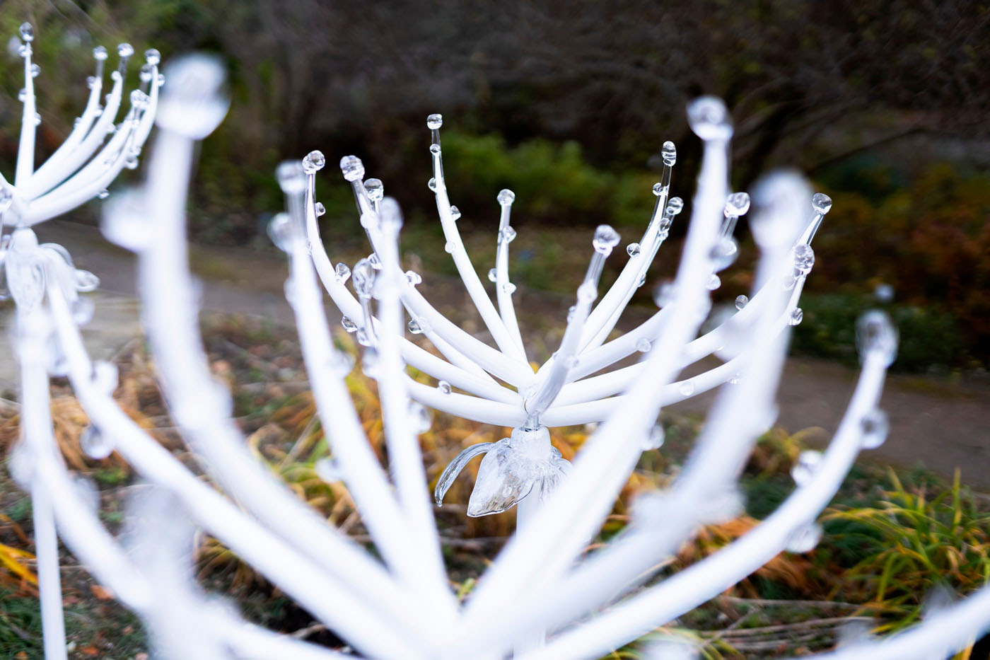 В пятницу, 28 ноября, в Ботаническом саду Праги второй год подряд открылась выставка стеклянных скульптур под названием «Хрустальный сад» (Křišťálová zahrada 2025).