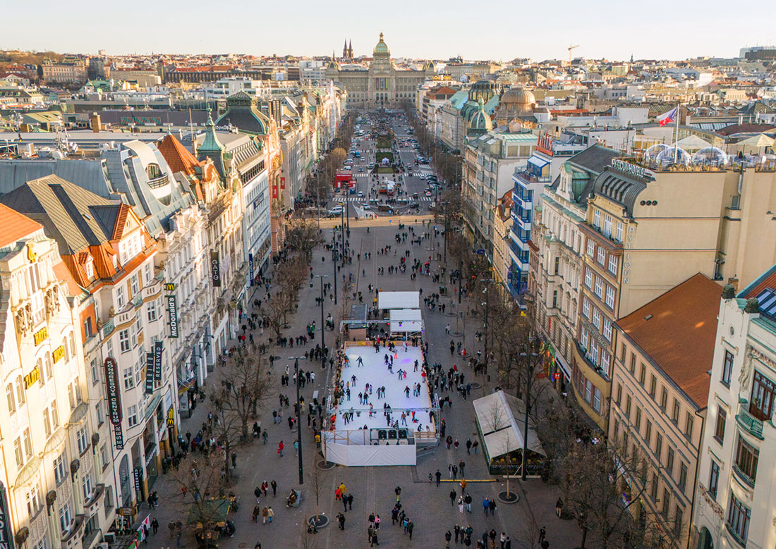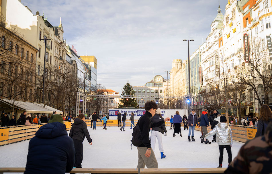 В понедельник, 1 декабря, на Вацлавской площади в центре Праги третий год подряд открылся каток. Его организовало городское агентство по развитию туризма Prague City Tourism.