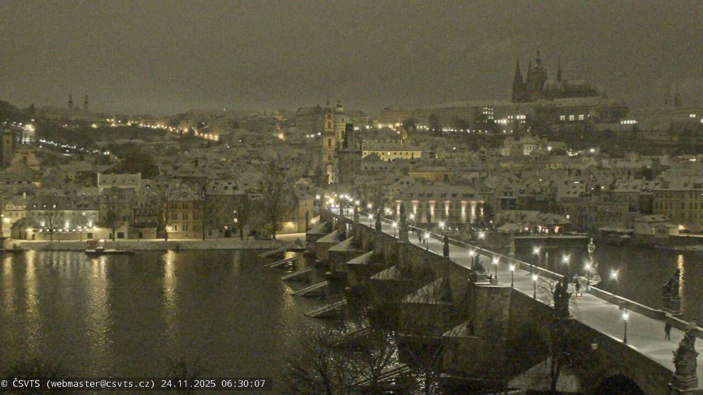В ночь на понедельник, 24 ноября, во многих регионах Чехии прошли снегопады. Белым покрывалом впервые в нынешнем осенне-зимнем сезоне покрылась и Прага.