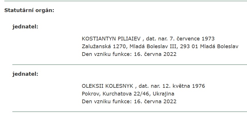 Отметим, что согласно открытым данным Торгового реестра Чехии, у зарегистрированной в Праге фирмы Reactive Drone s.r.o. два учредителя, которые одновременно выполняют функции управляющих директоров. У обоих мужчин не чешские имена и фамилии, а местом постоянного проживания одного из них указан город Покров в Украине.